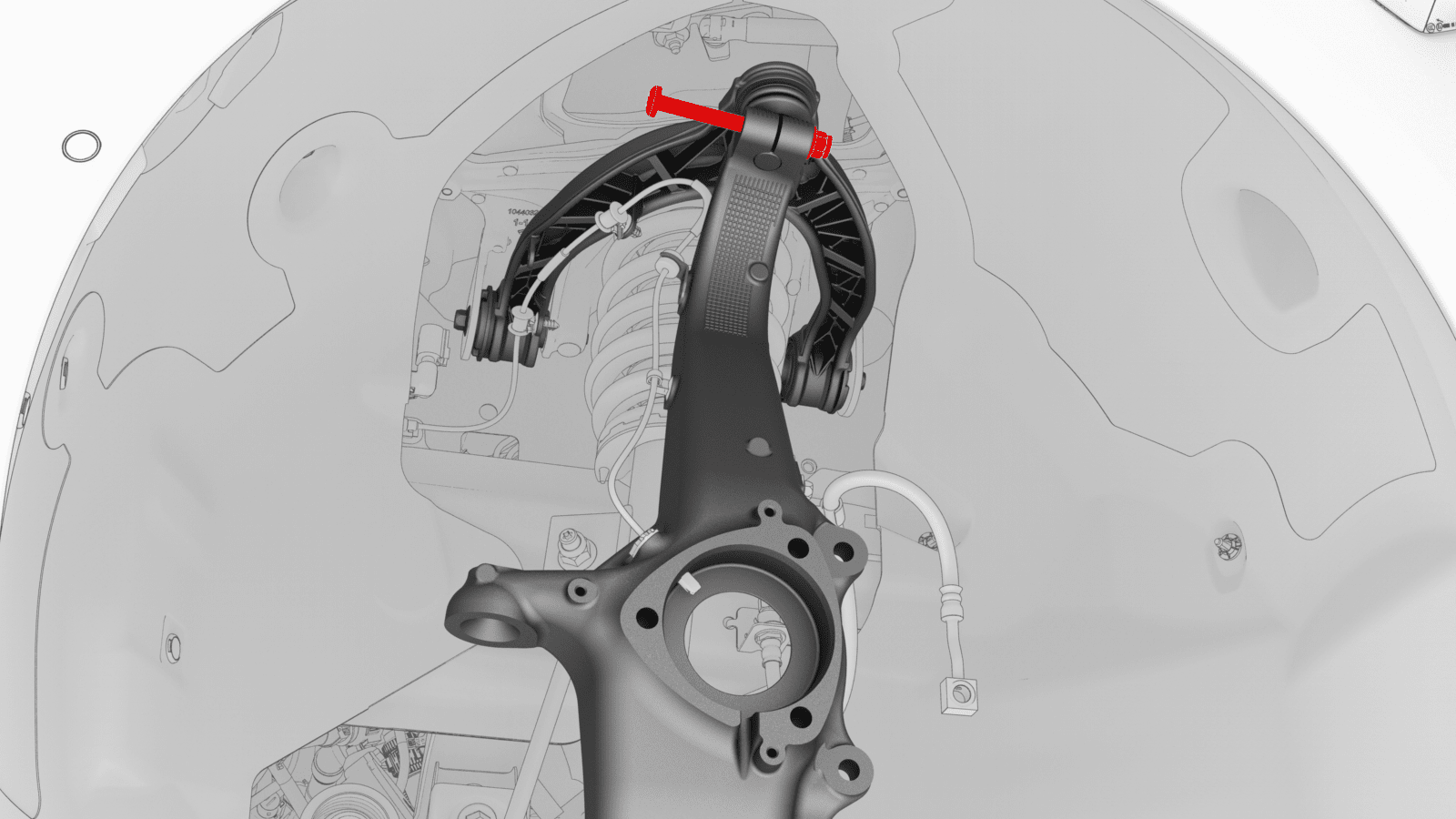 - Remove the bolt and discard the nut that attach the LH upper control arm to the LH front suspension knuckle.