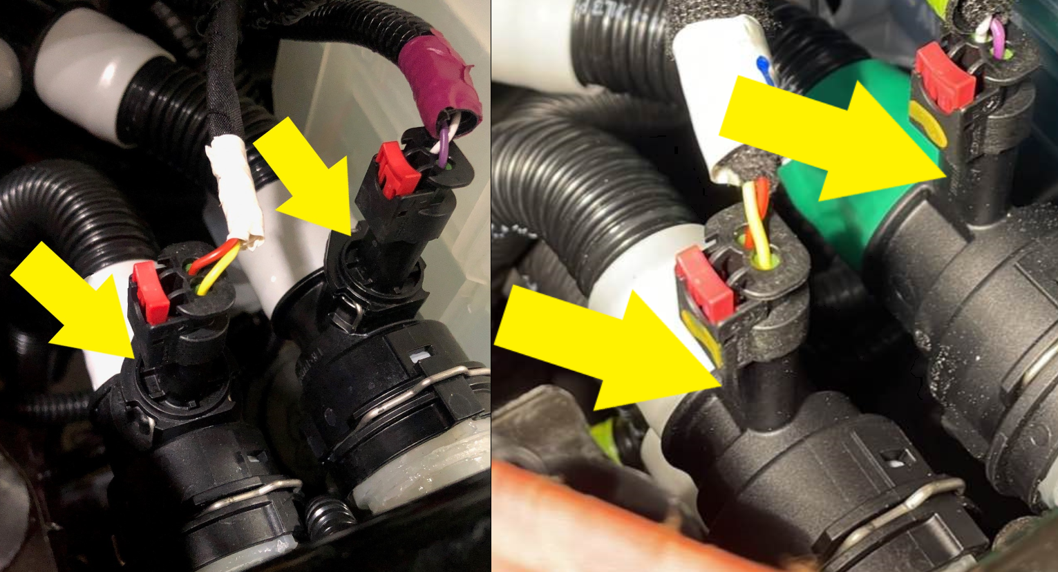 NoteHarness and coolant hose are color coded. Match harness color to coolant hose color.