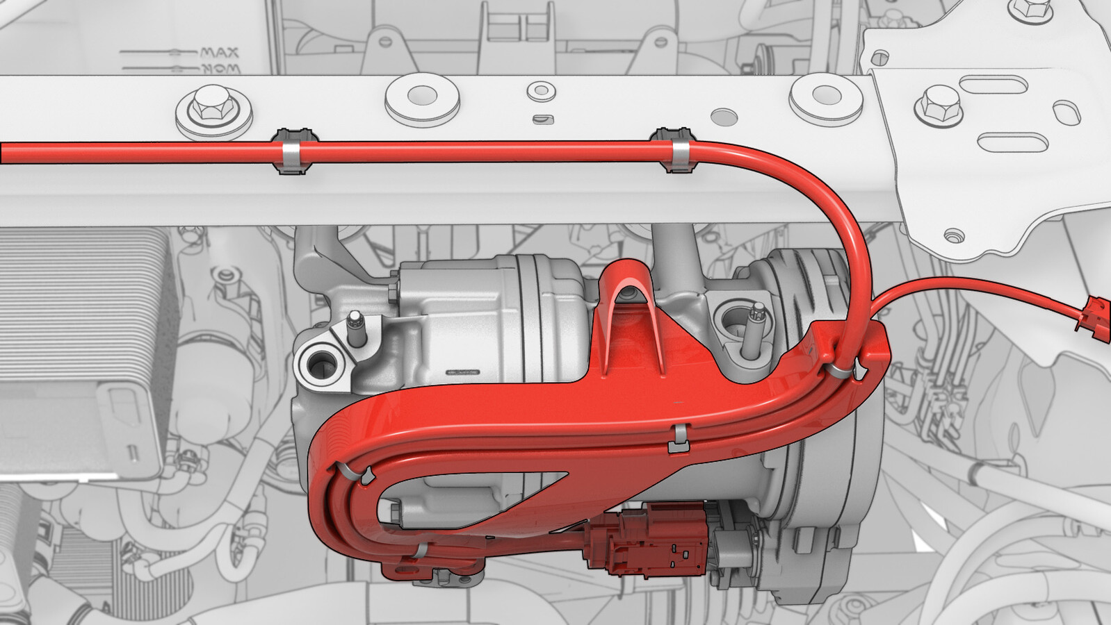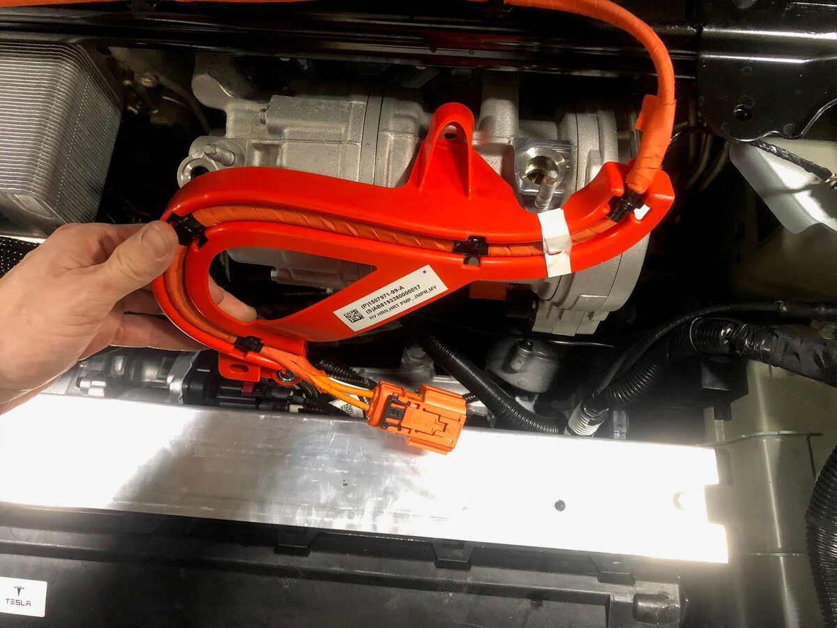 Position the A/C compressor HV harness