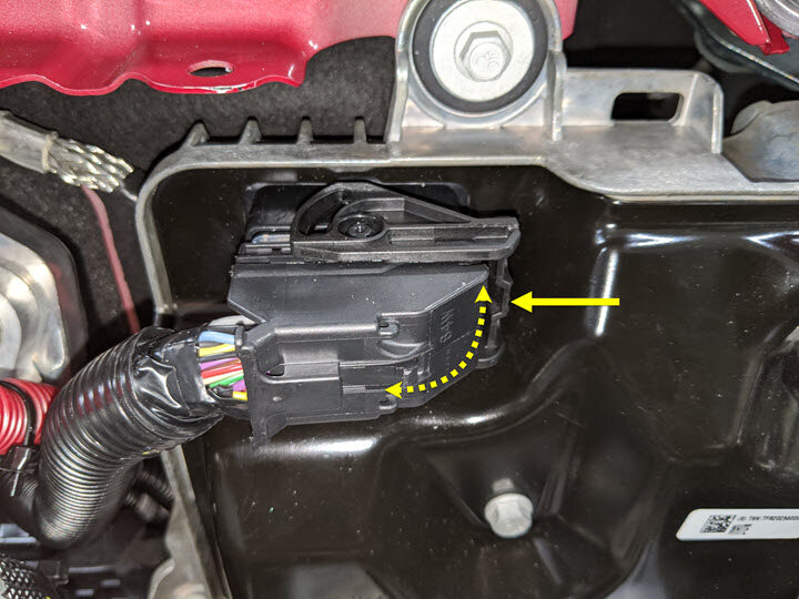 CAUTIONDO NOT push down on the red locking tab. Pull the tab away from the connector until the connector is unlocked, and then continue pulling to release the connector.