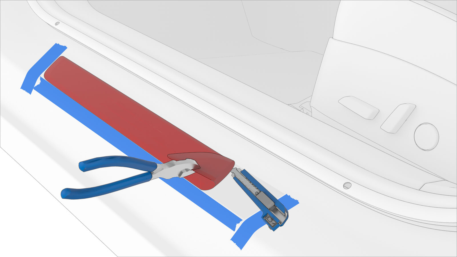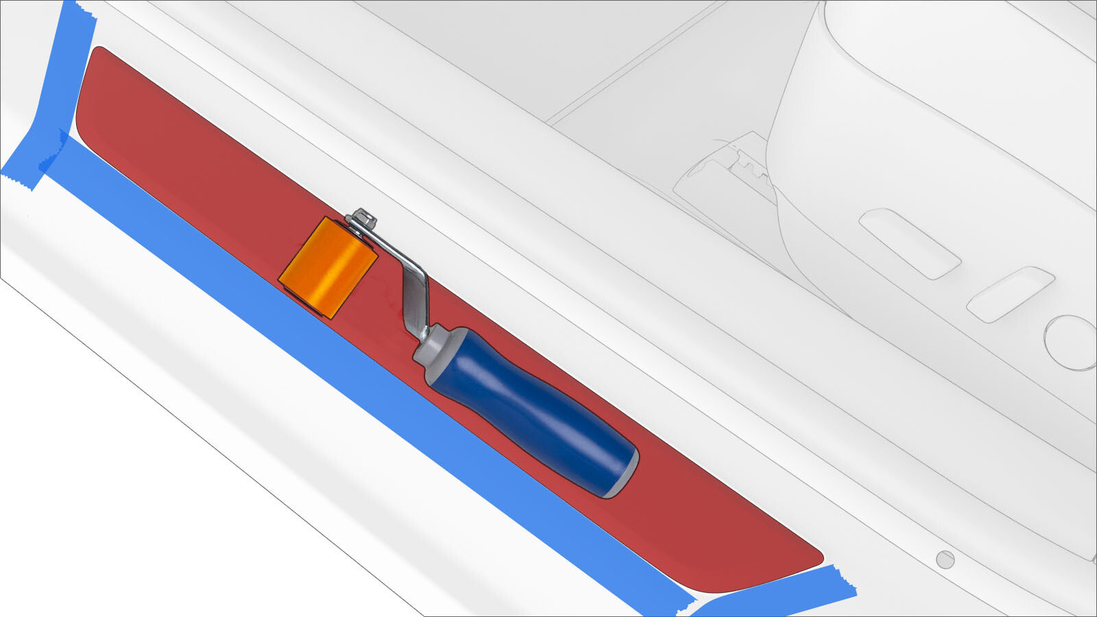 - Using the masking tape as a guide, carefully place the new sill plate into place and press down on it to adhere it to the vehicle.