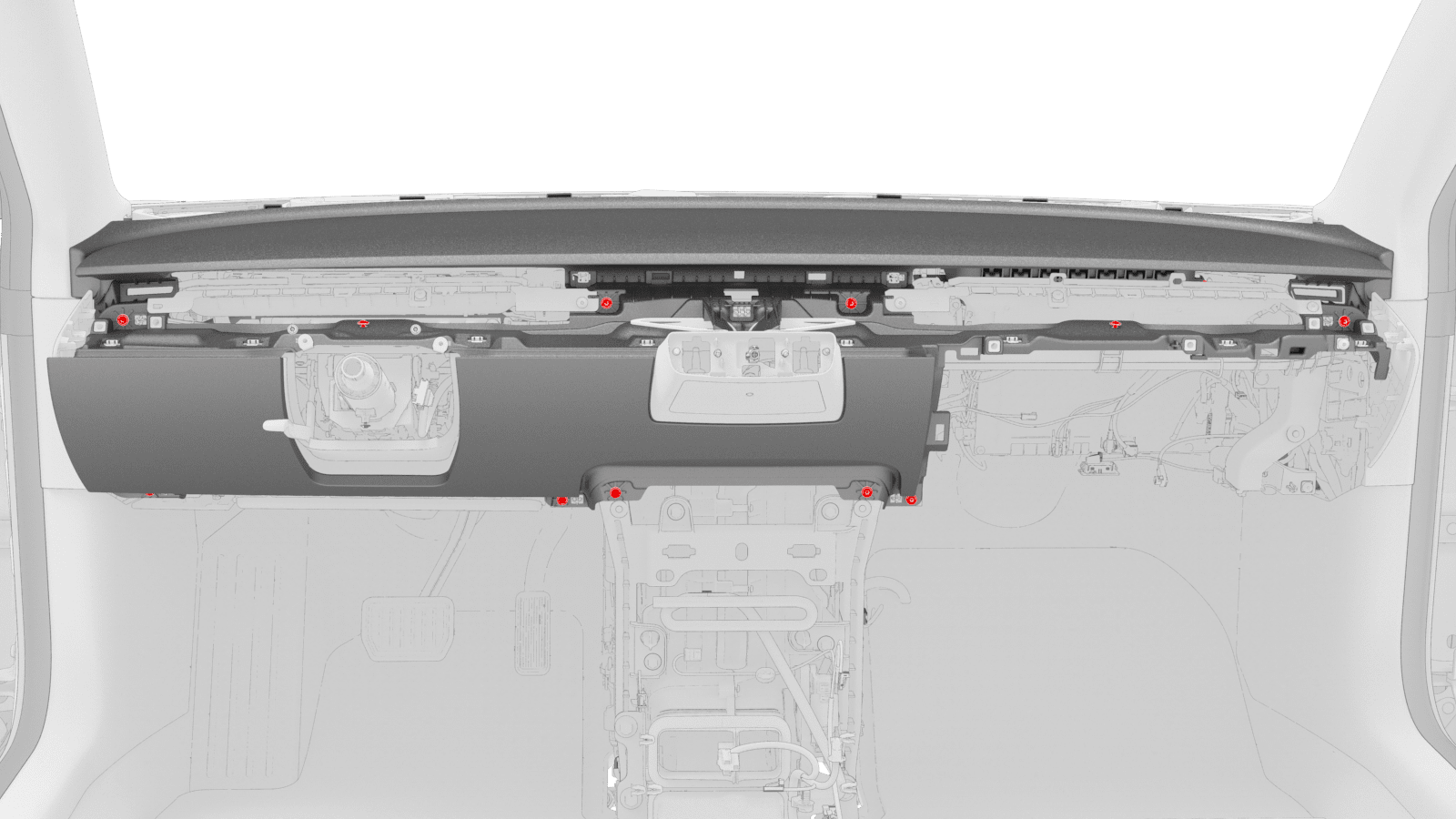 8 Nm (5.9 lbs-ft) - Remove the screws (x2) that attach the IP carrier to the cross car beam near the front passenger airbag (torque 2.3 Nm).