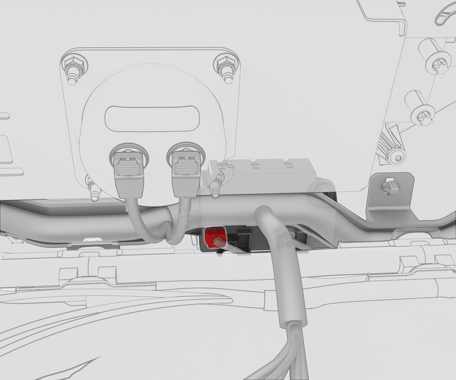 - Remove the touchscreen and the center display housing. See Touchscreen (Remove and Replace).