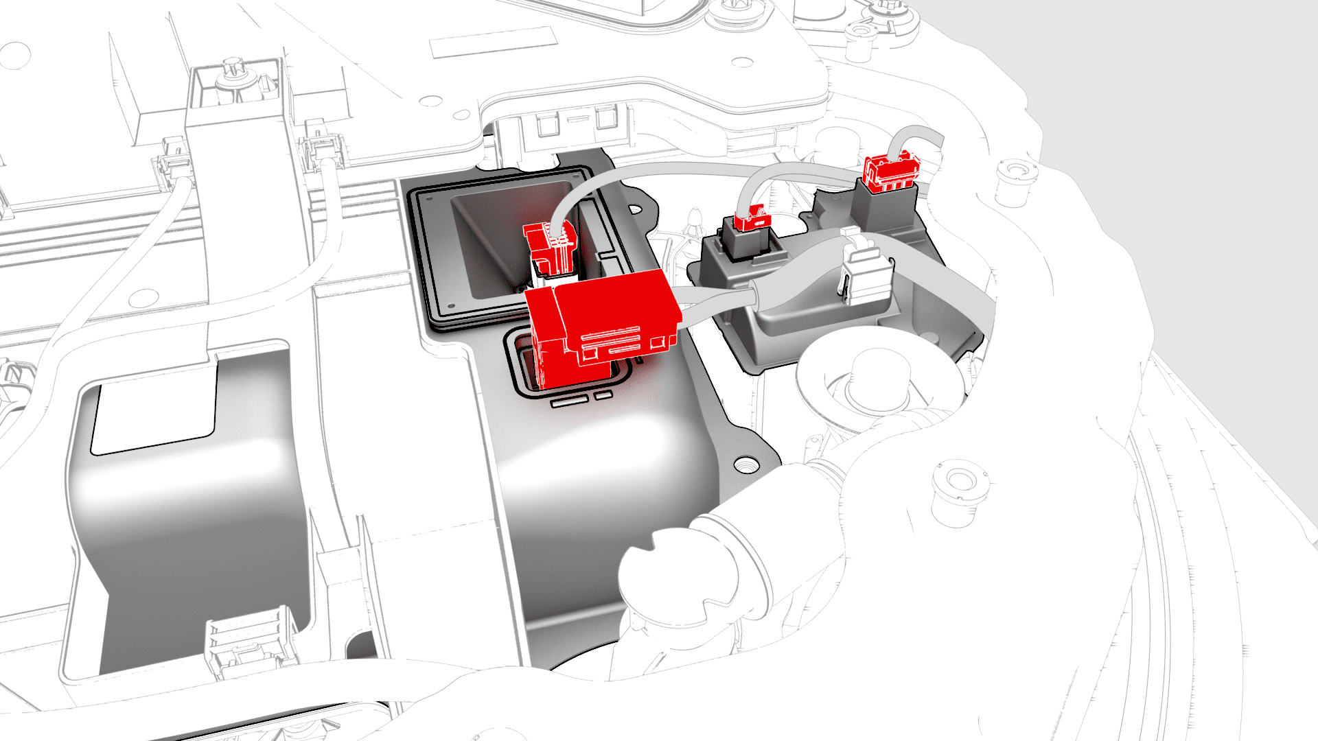 - Connect the electrical harness to the HV battery positive contactor, and power conversion system LV and DC bus HV connectors.
