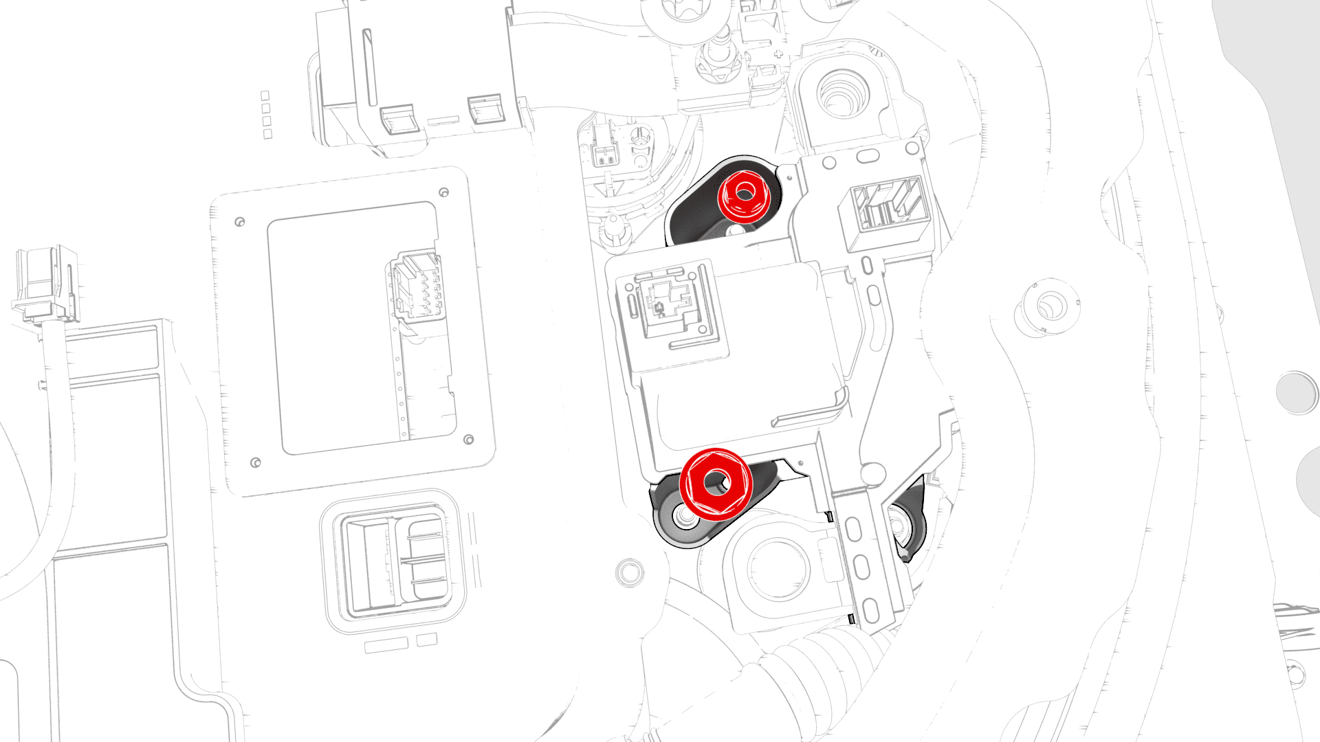 - Remove the nuts (x3) that attach the positive HV battery power switch to the ancillary bay.