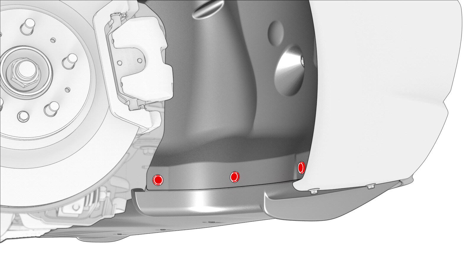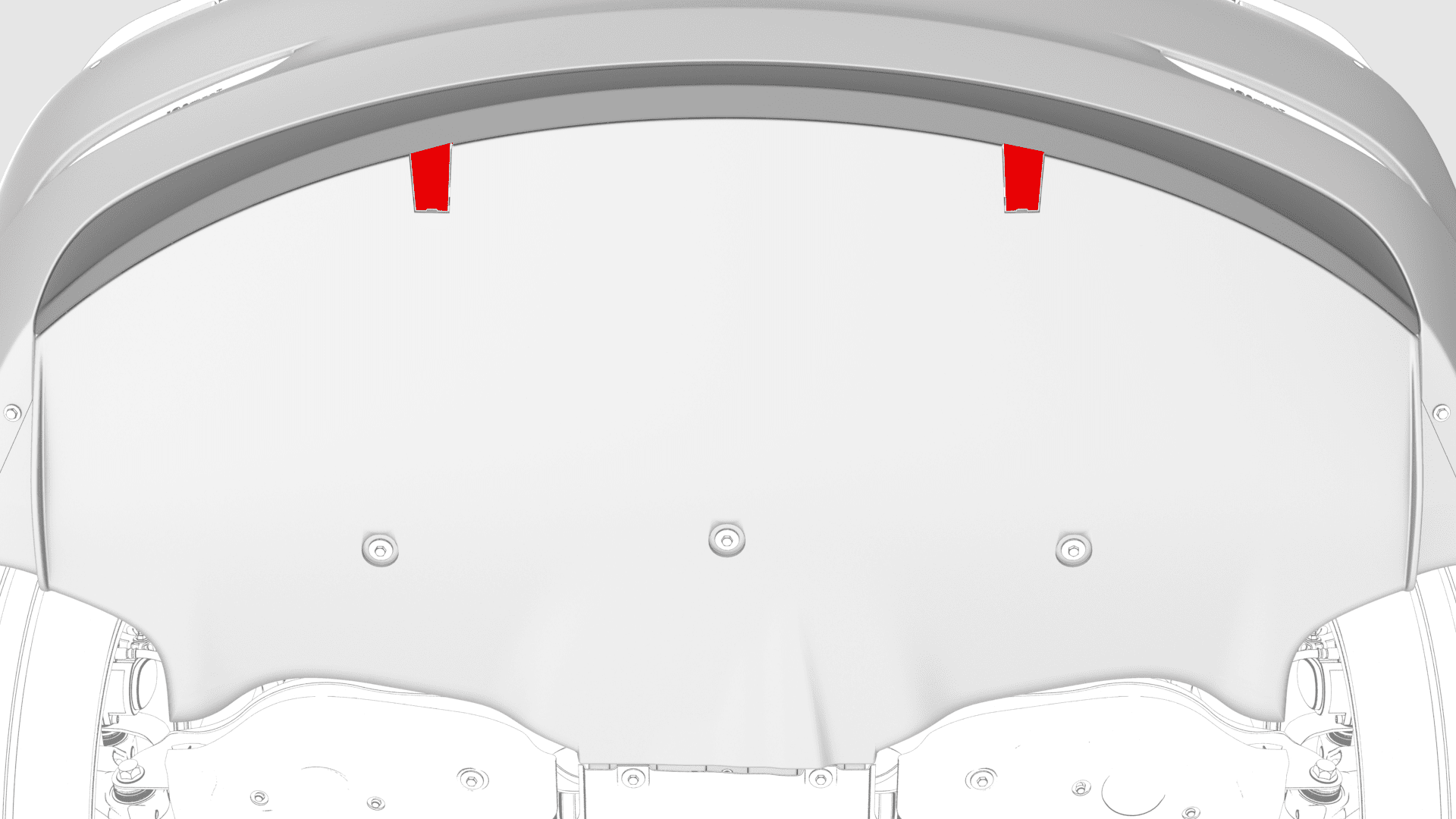 | Bolts that attach the rear fascia diffuser to the outer edge of the rear fascia |