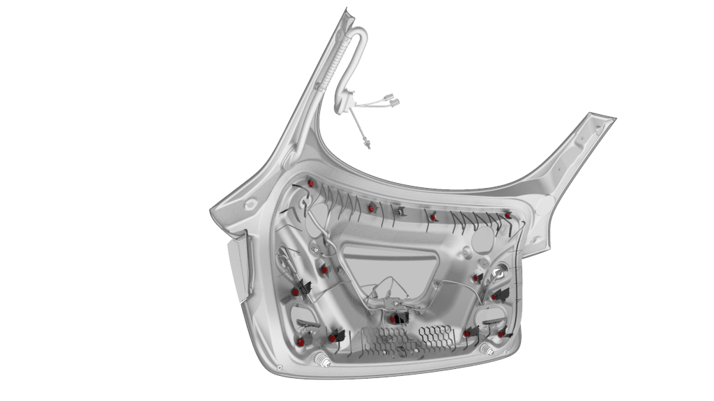 NoteThe clips (x4) closest to the rear window have a higher retention force; use a clip prytool, if necessary. Remove any broken clips from the trunk lid.