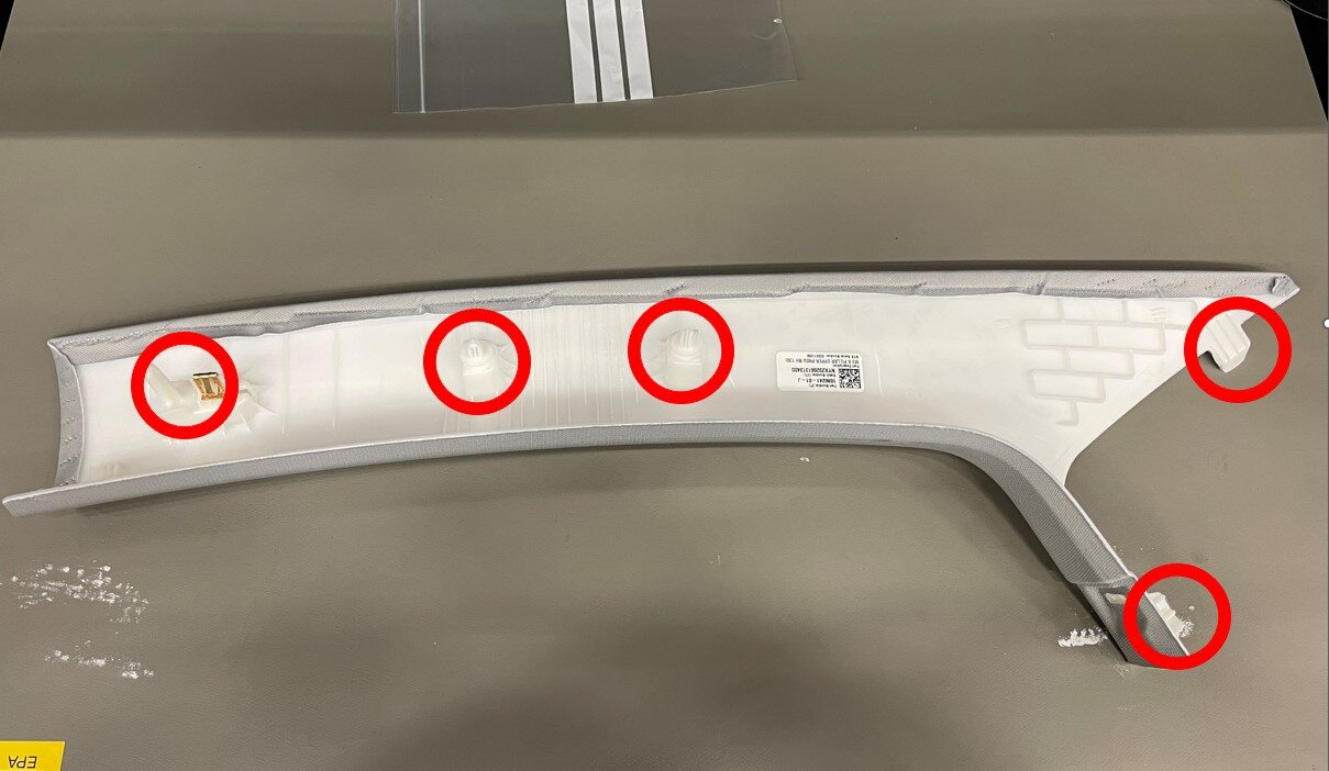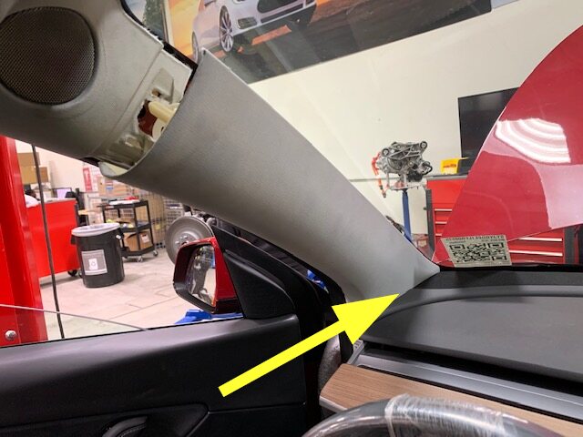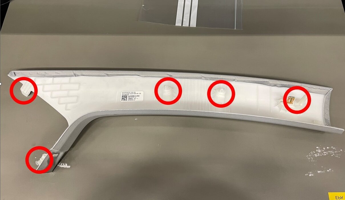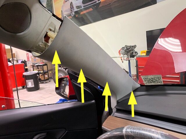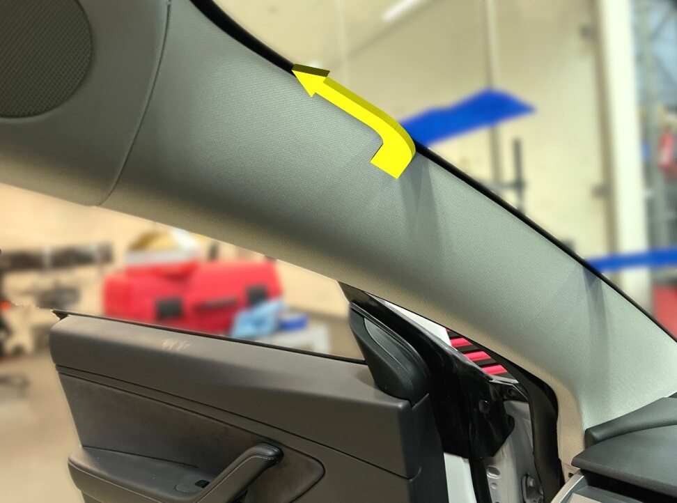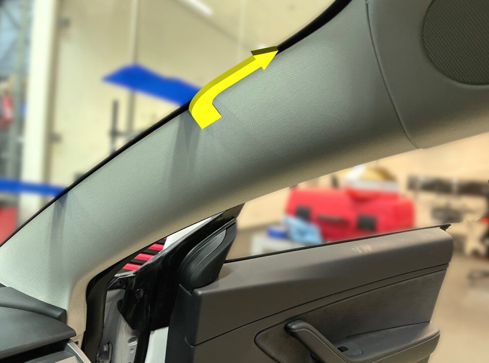 Note1x clip, 1x tab, Align bottom tab then push on top clip to fully seat mid A-pillar, Make sure seal seat on top of trim