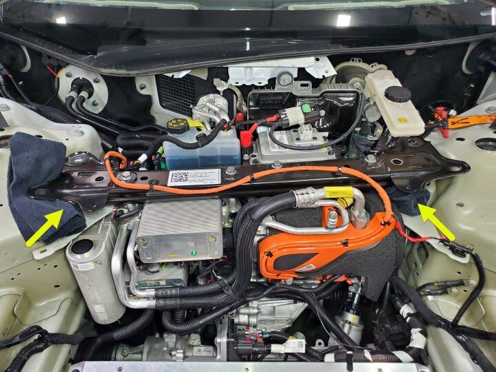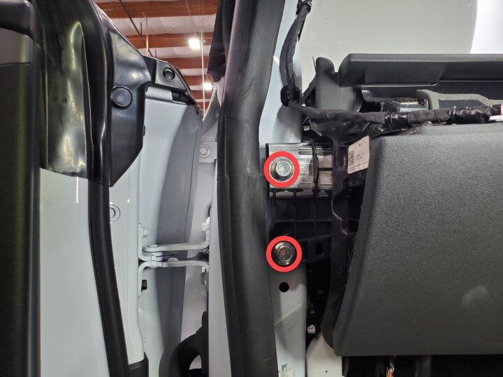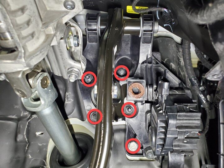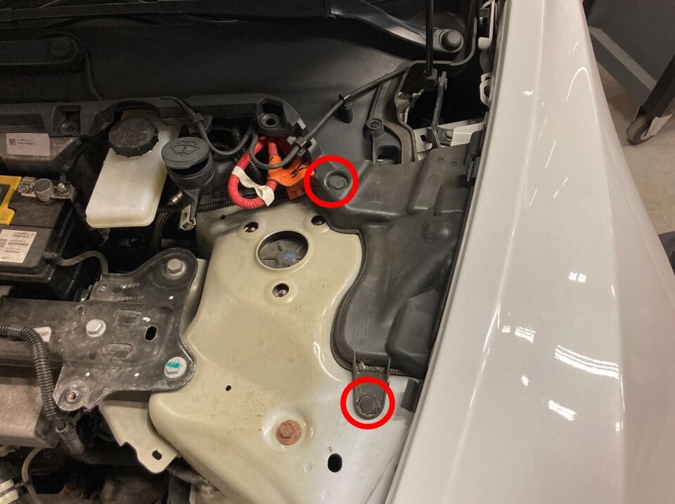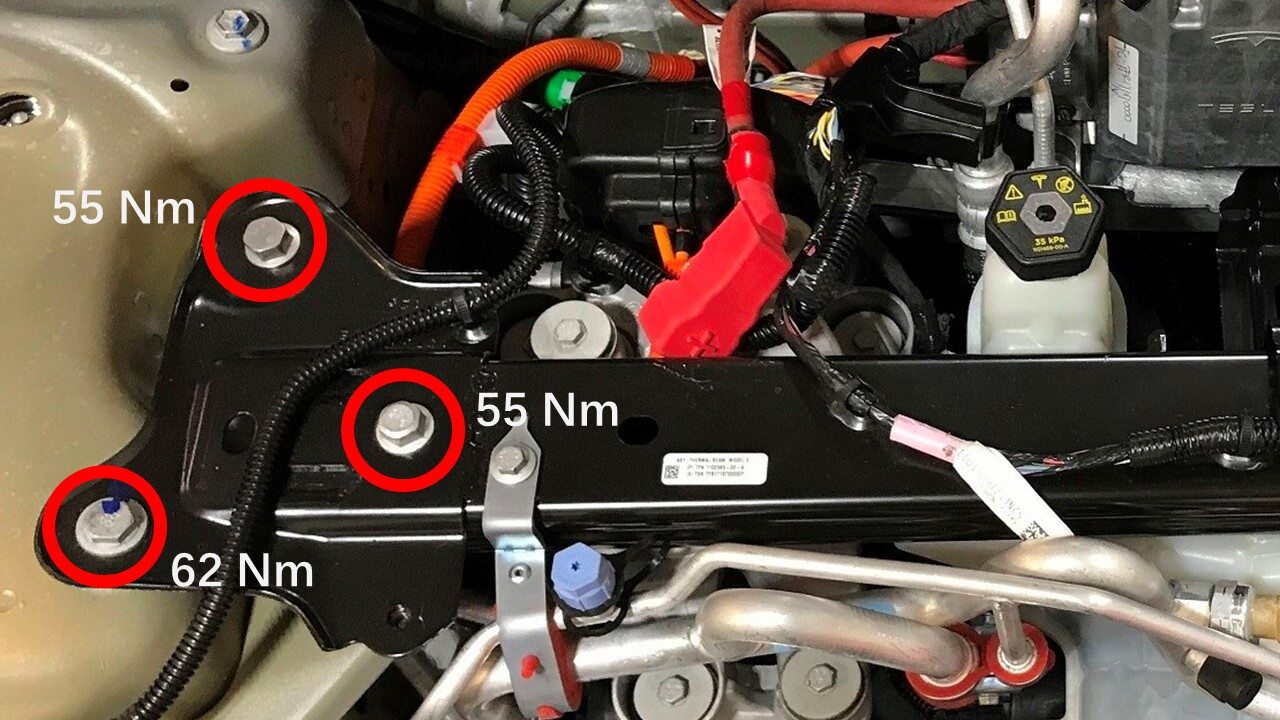 Note7x bolts, 10mm, 5 Nm, Lift up RBN covers to access upper fasteners, Newer vehicles may not be equipped with covers