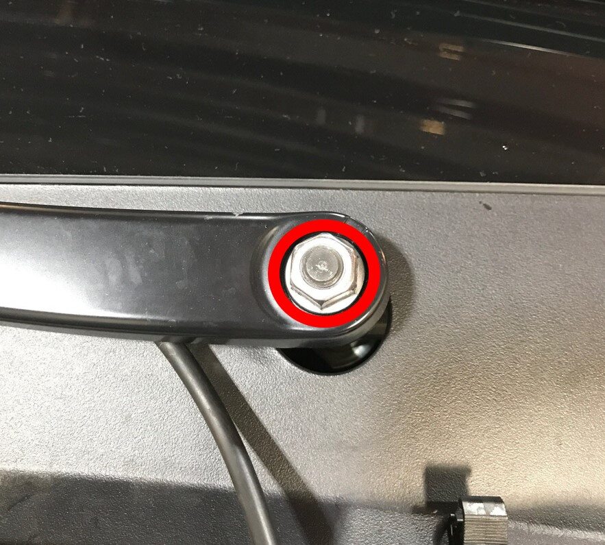 Note1x nut, 15mm, 25 Nm, Make sure wiper tip is aligned between two indicators at corner of windshield