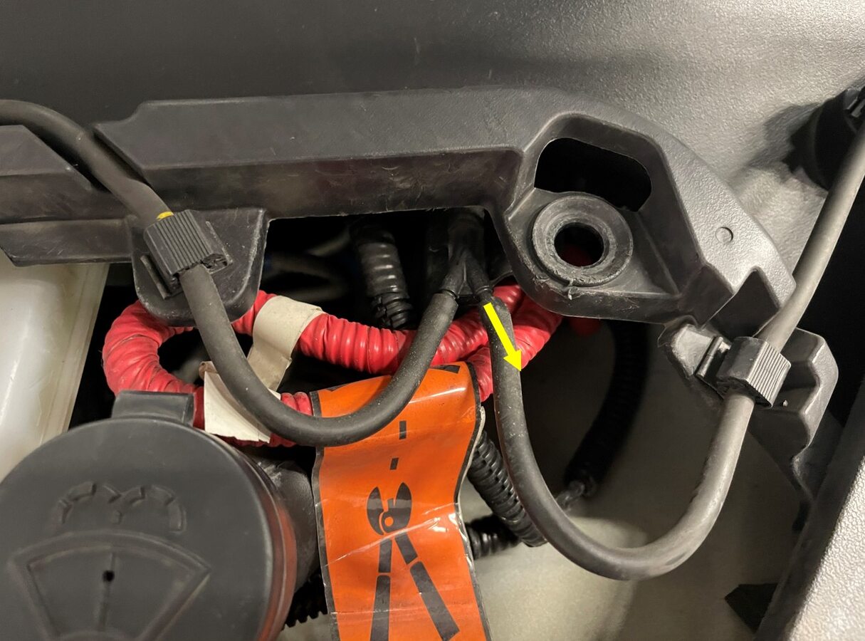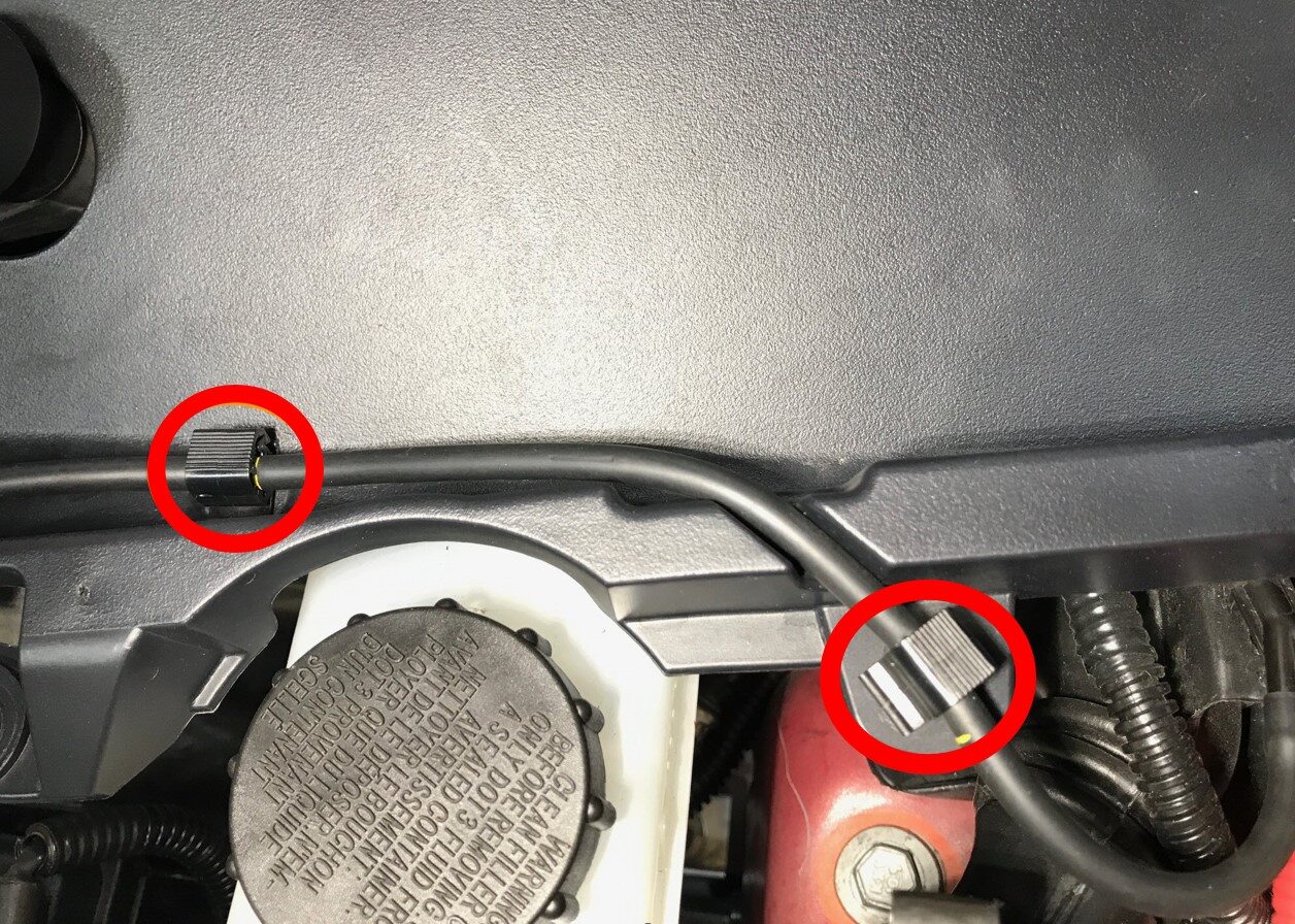 Note4x clips, 1x connector, Frunk safety switch, 3x guide tabs, Align 3x tabs then push downward to secure clips