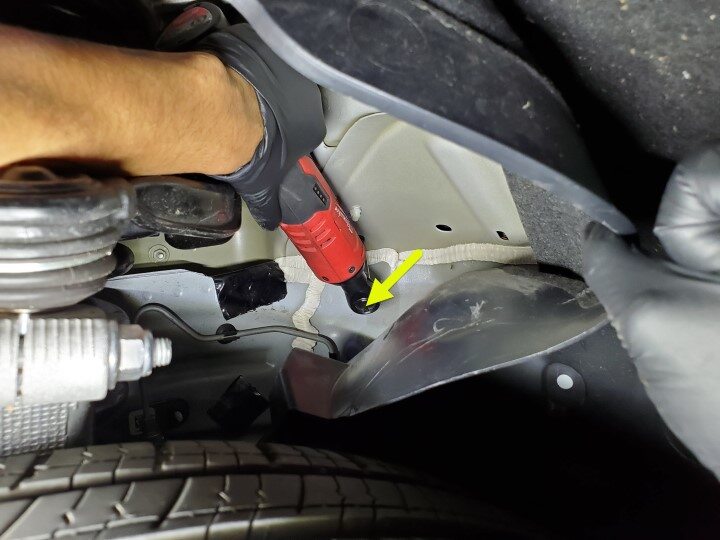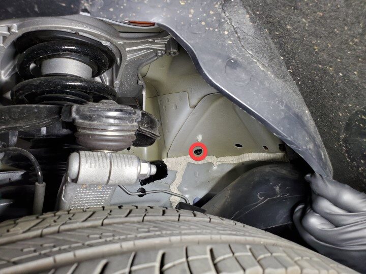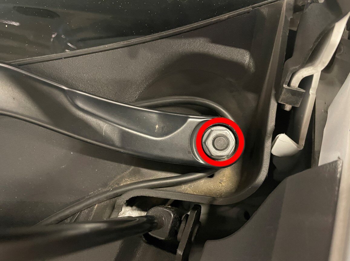 Note1x bolt, 10mm, 3 Nm, Pull wheel liner aside