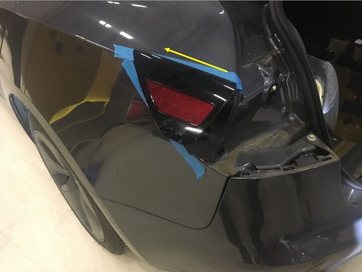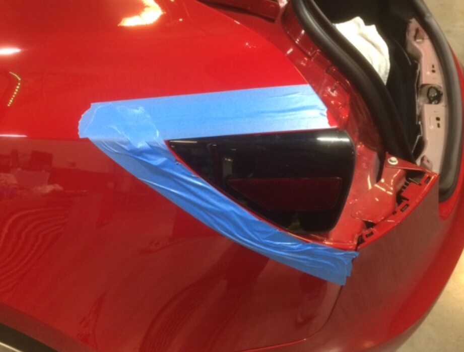 - Apply masking tape around the charge port area.