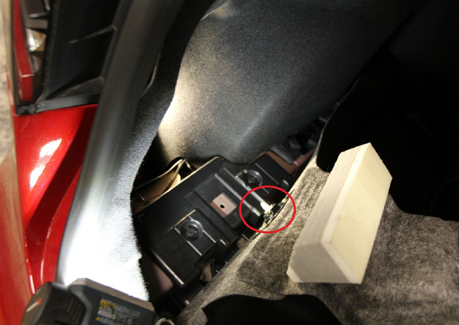 - Lightly push on the lower corner of charge power door once to confirm that the door opens.