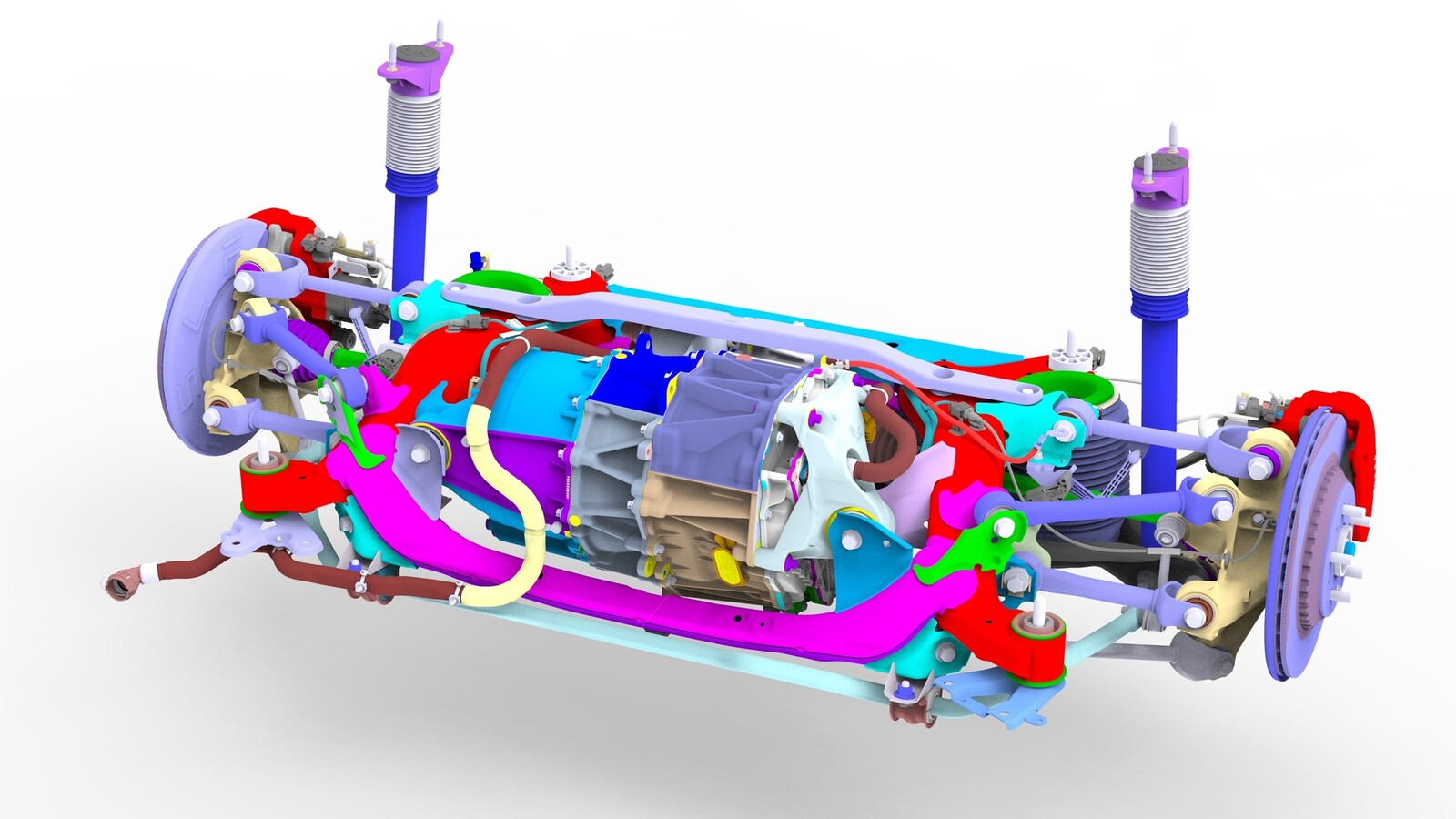 With an assistant, slowly raise the rear drive unit and subframe into position.