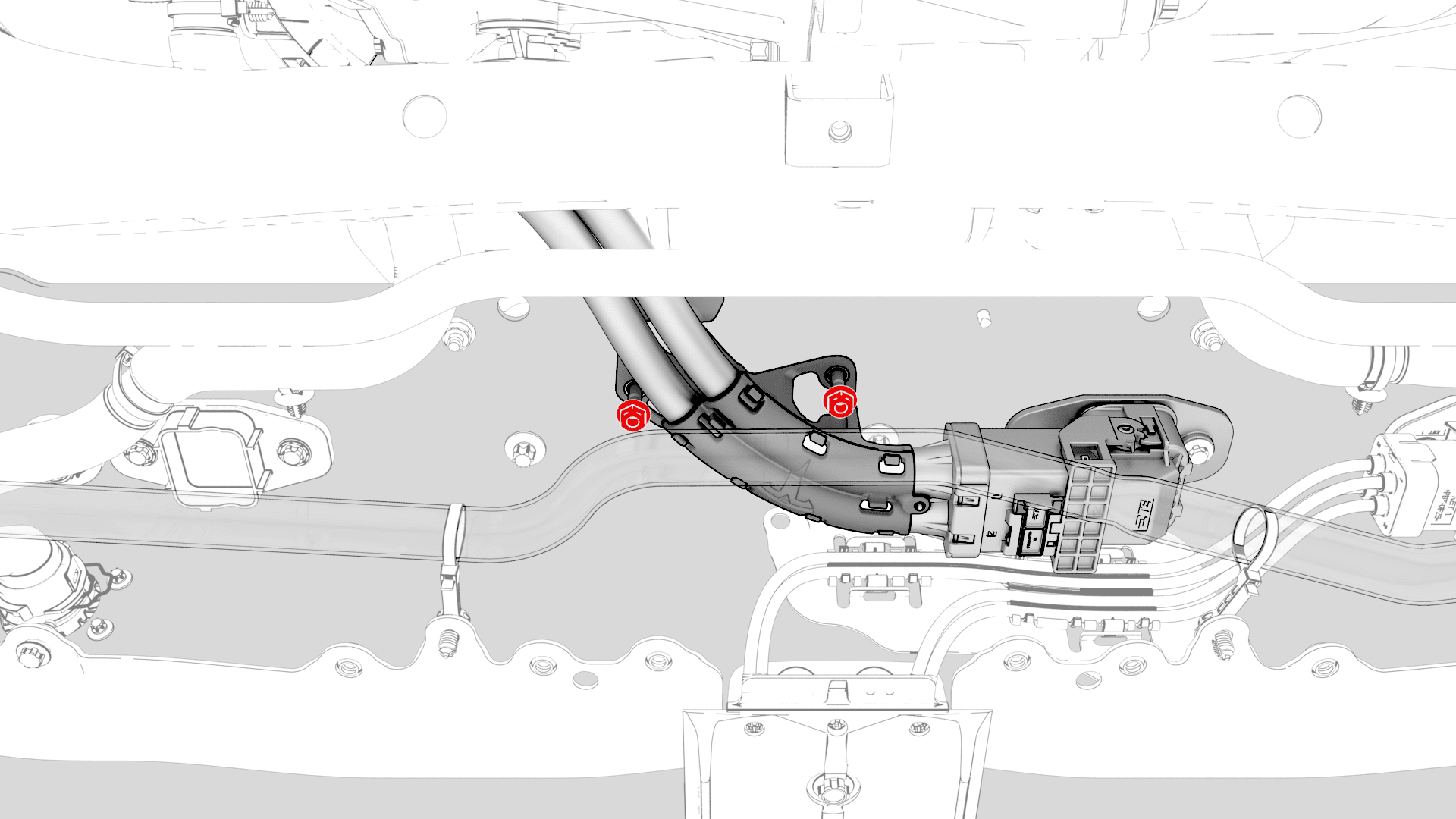 - Connect the electrical connector for the LH of the 12V subframe harness.