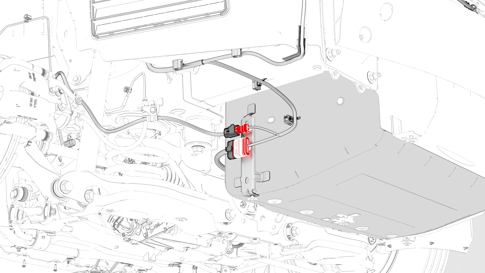 - Disconnect the electrical harness from the LH 12V subframe connectors.
