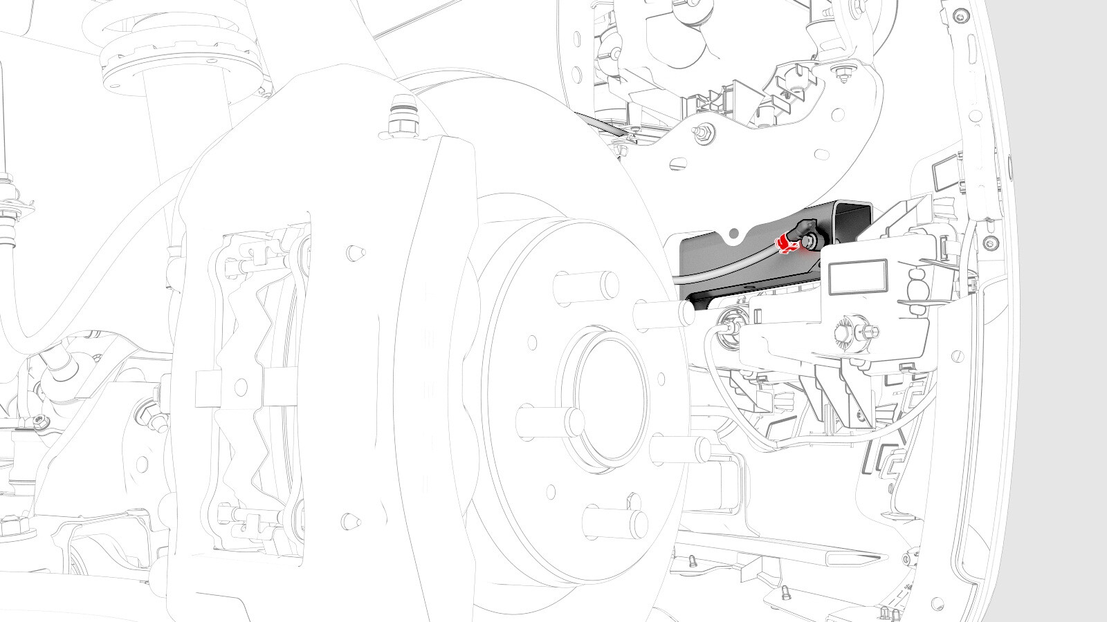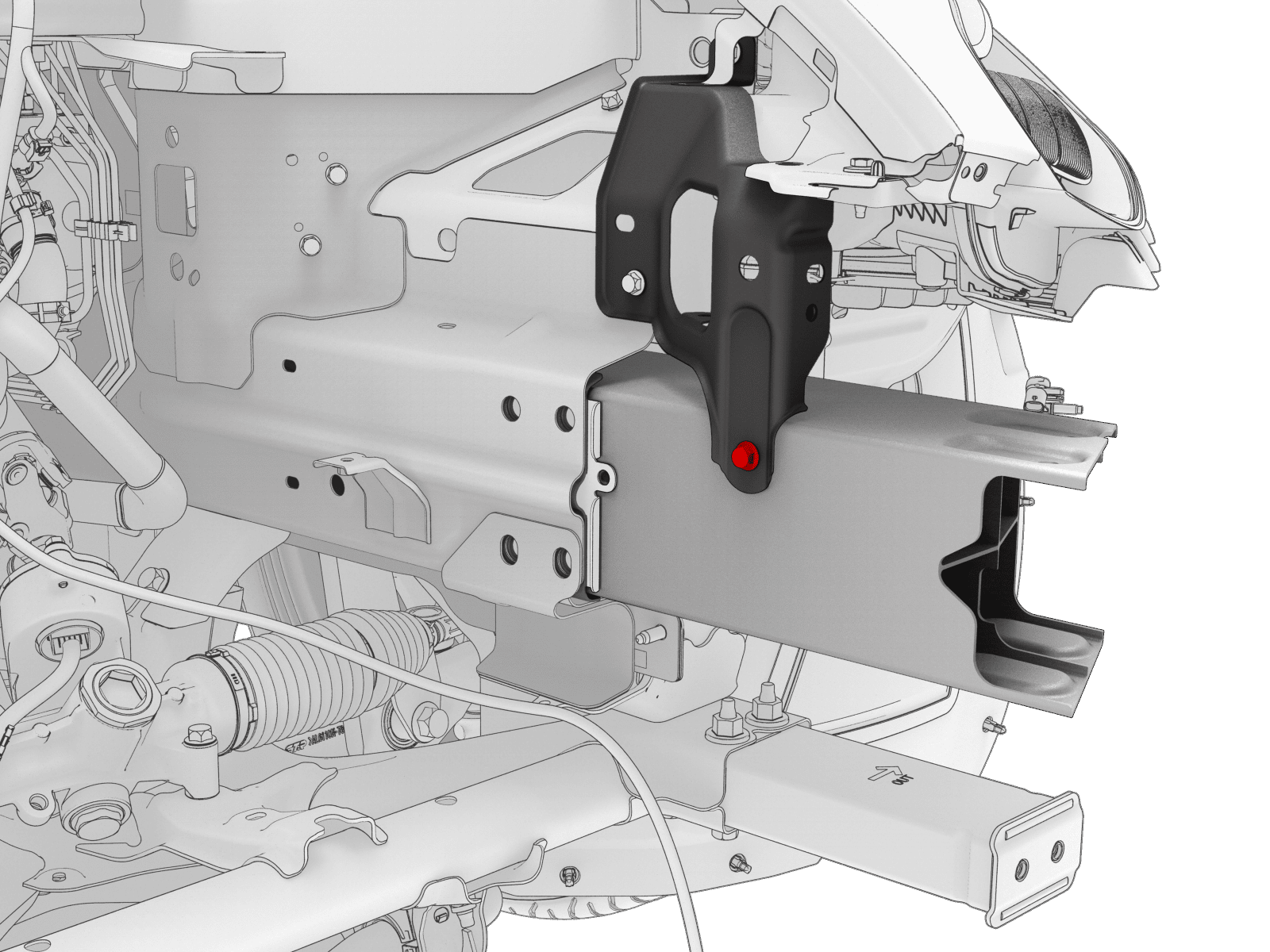 - Remove the bolt that attaches the LH front fender support to the LH front crush can.