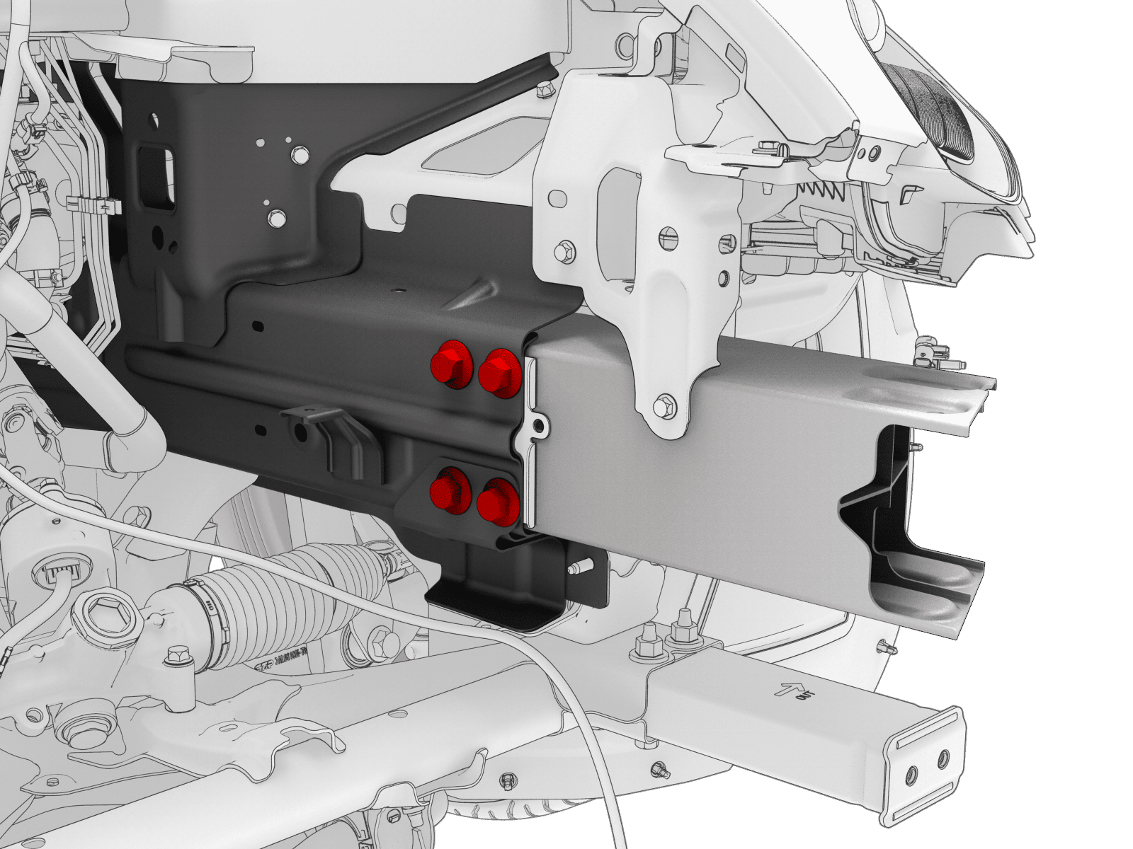 - Remove the bolts (x4) that attach the LH front crush can to the LH front inner rail.