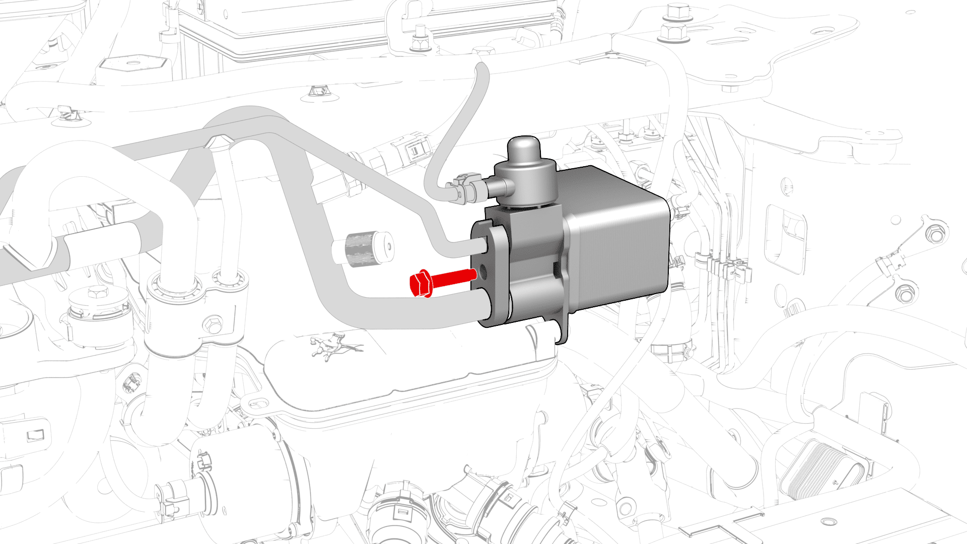 then install the bolt that attaches the fitting to the chiller and EXV assembly.