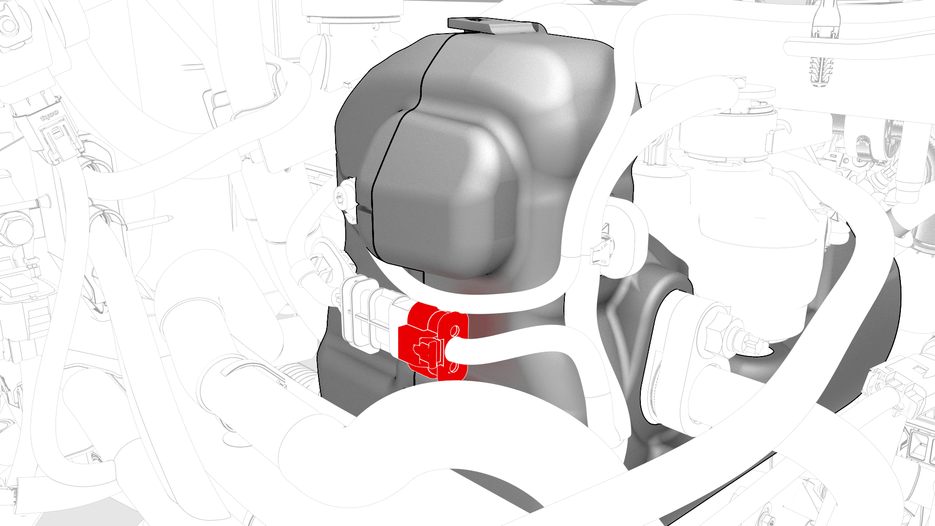 - Connect the electrical harness to the high pressure transducer connector.