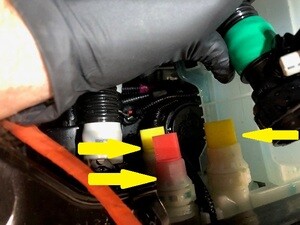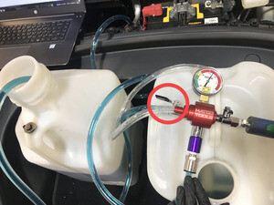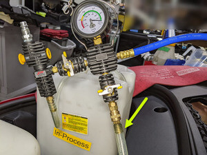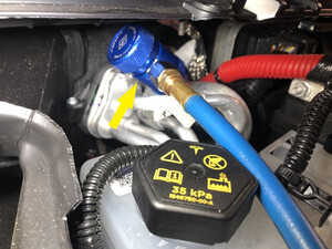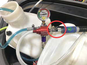 - Remove vacuum refill hose from refill cap on coolant bottle