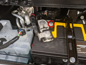 Note1x nut, 10mm, 6 Nm, Ensure the vehicle is in park, climate control system is off, and vehicle is not charging before disconnecting 12V