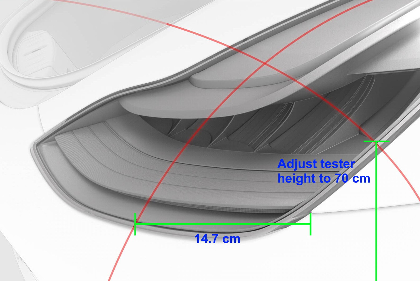 - Adjust the height of the headlight tester tool to ~27.5 in. (70 cm) above the ground to align with the center point of the headlamp.