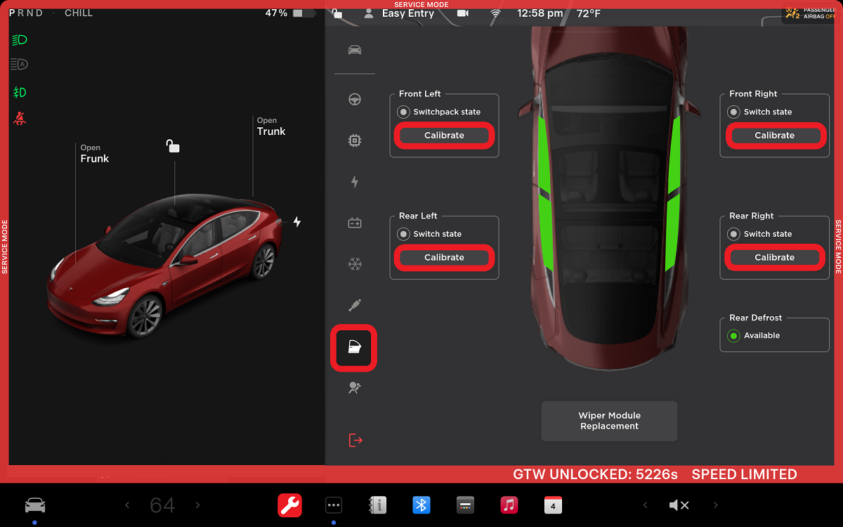 4. On the touchscreen, touch Controls > Service Mode > Closures > Windows, and then tap each window's Calibrate button to calibrate the windows.