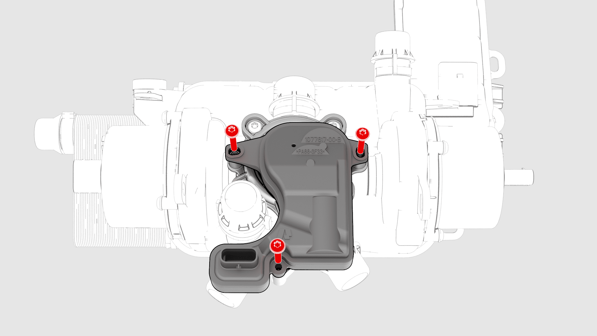 Install the 5-way valve actuator on the 5-way valve cover, and then install the screws that attach the actuator on the cover.