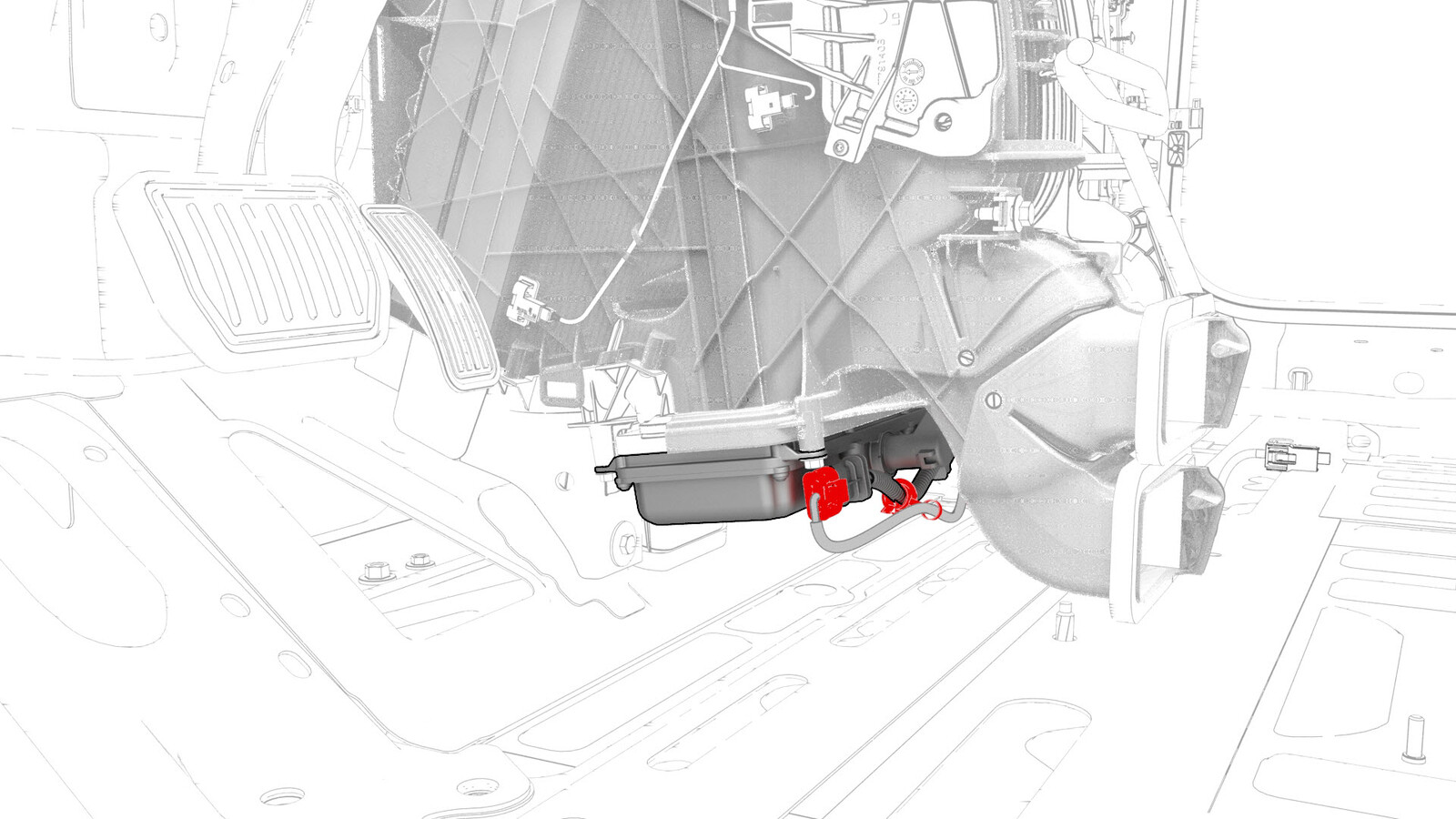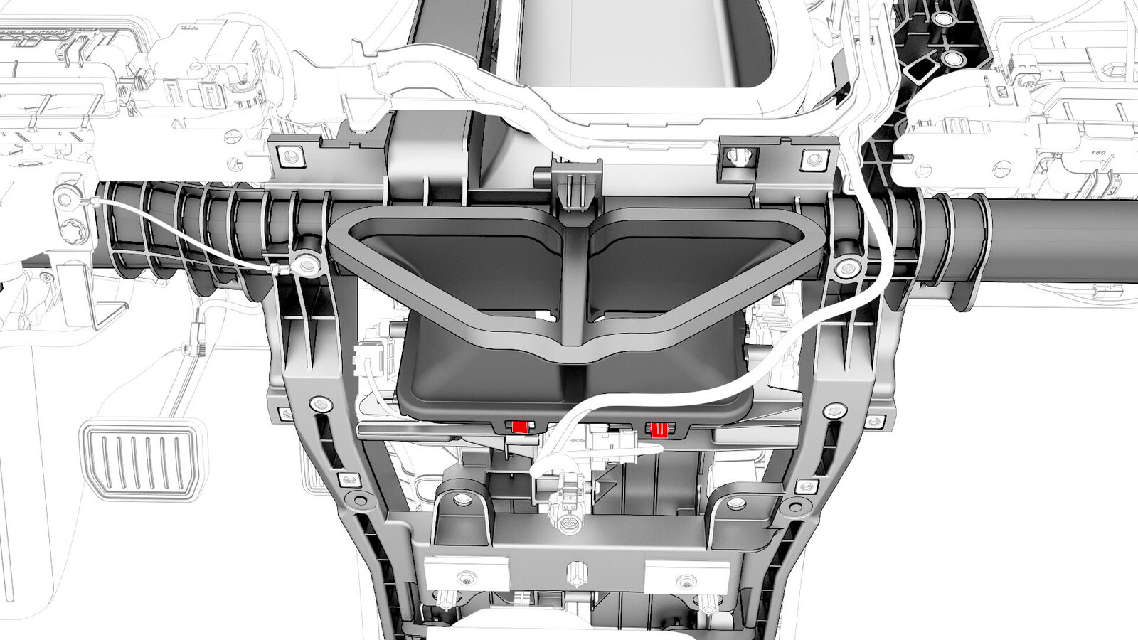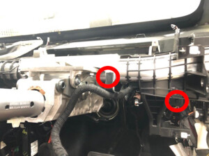 - Release the clips (x2) that attach the instrument panel harness to the HVAC fan assembly.