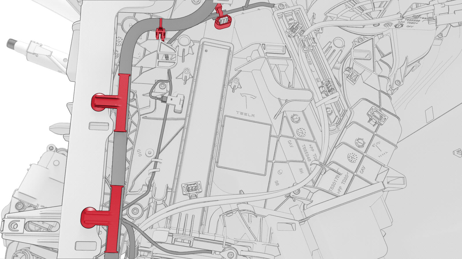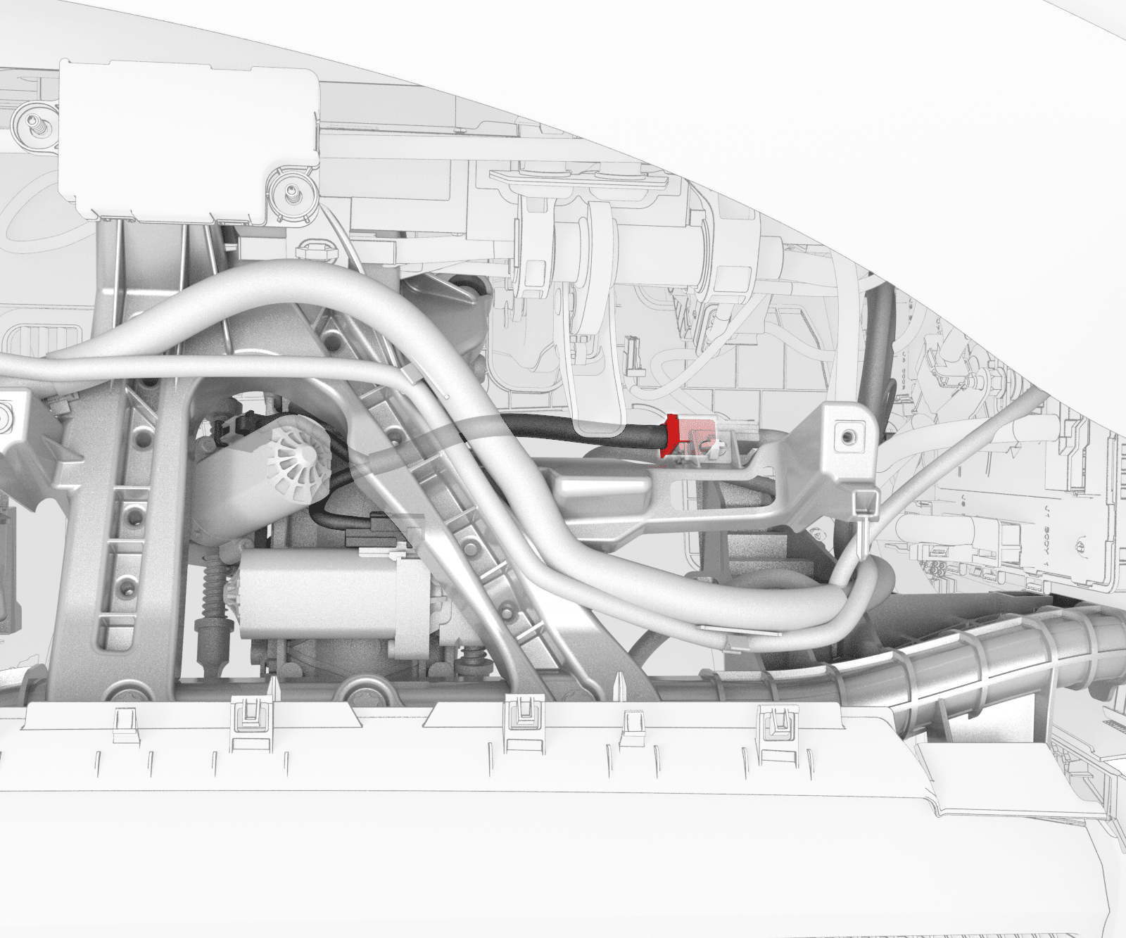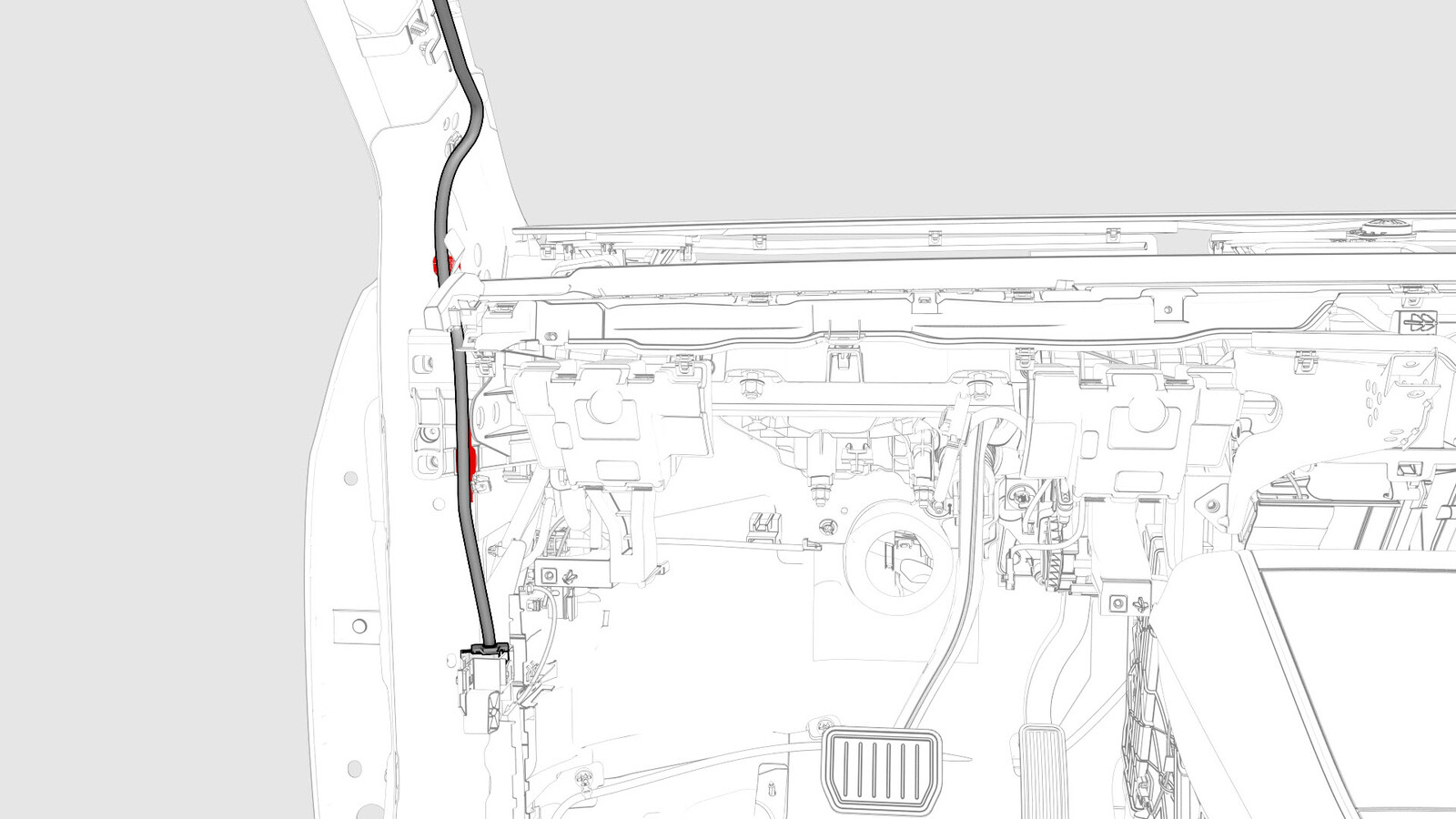 - Release the clips (x3) that attach the instrument panel harness to the top portion of the cross car beam, and then release the HVAC electrical harness from the instrument panel harness.