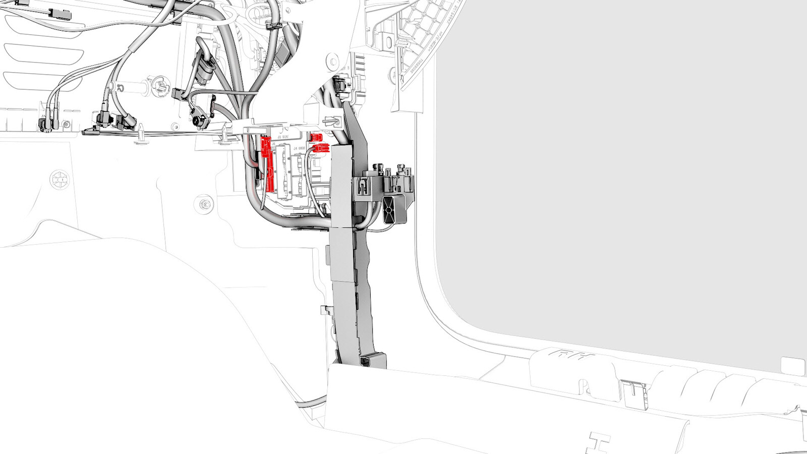 - Disconnect the connectors (x3) from the harness clip at the RH lower A-pillar.