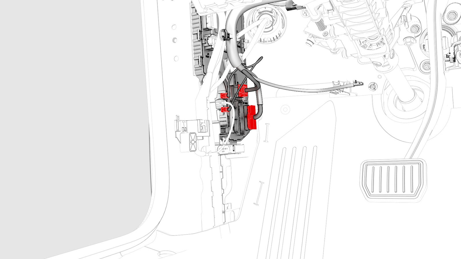- Disconnect the instrument panel harness from the LH body controller module connectors, and then remove the harness clip from the instrument panel near the LH body controller.