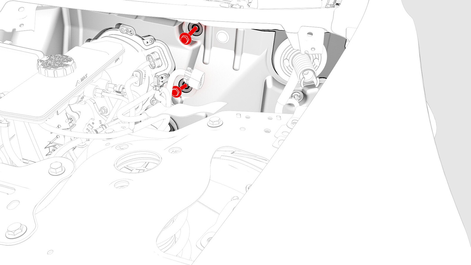 - Remove the fasteners (torque 25 Nm) that attach the RH cross car beam bracket, and then remove the bracket from the vehicle.