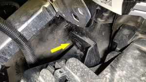 - Release the clip that attaches the front harness to the front underhood storage unit reinforcement bracket.