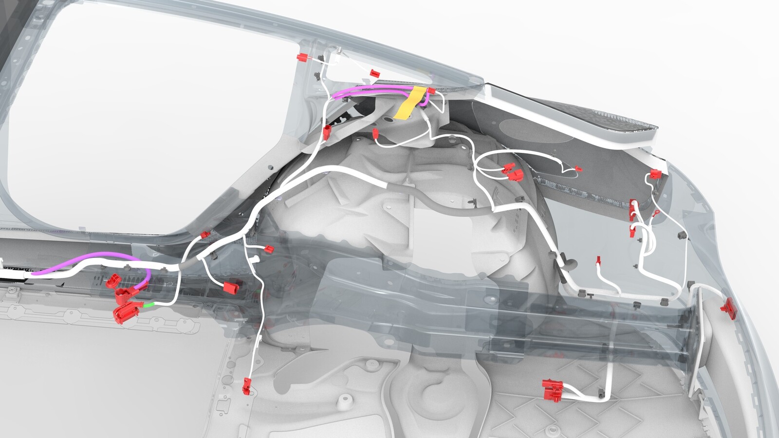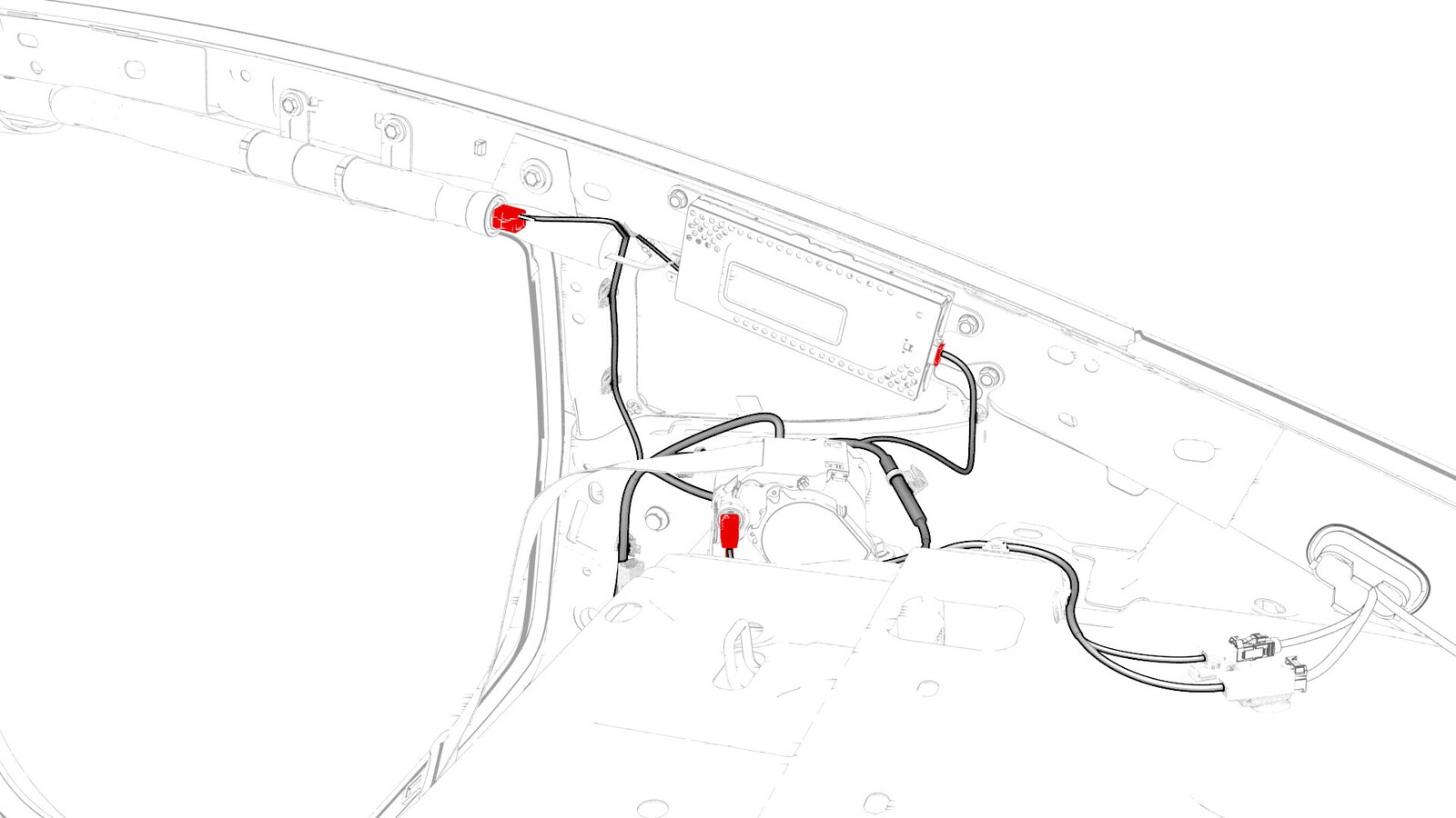 - Release the clips that attach the electrical harness to the body at the RH side of the trunk area.