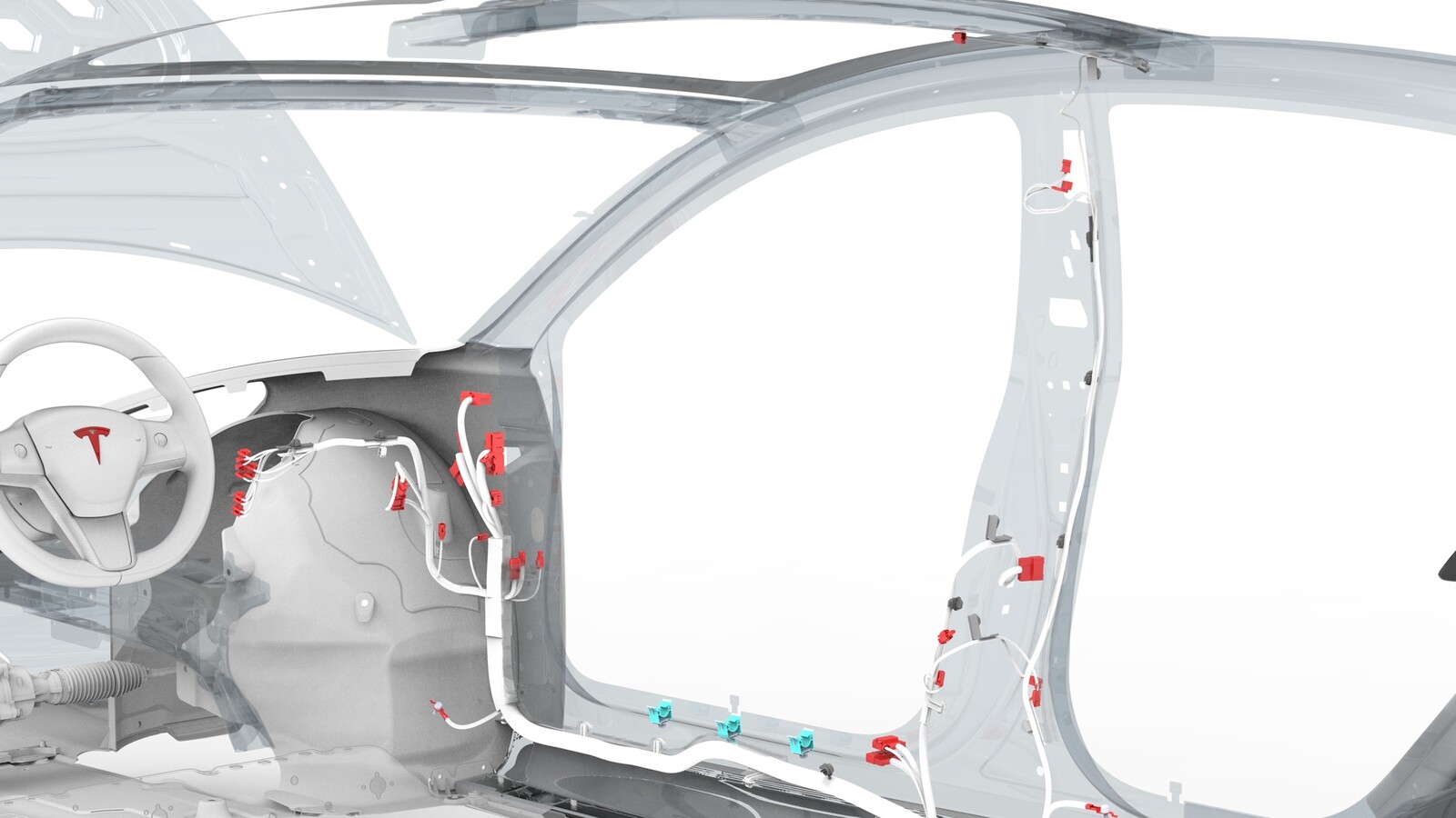 - Release the clips that attach the electrical harness to the body in the A-pillar and B-pillar areas.