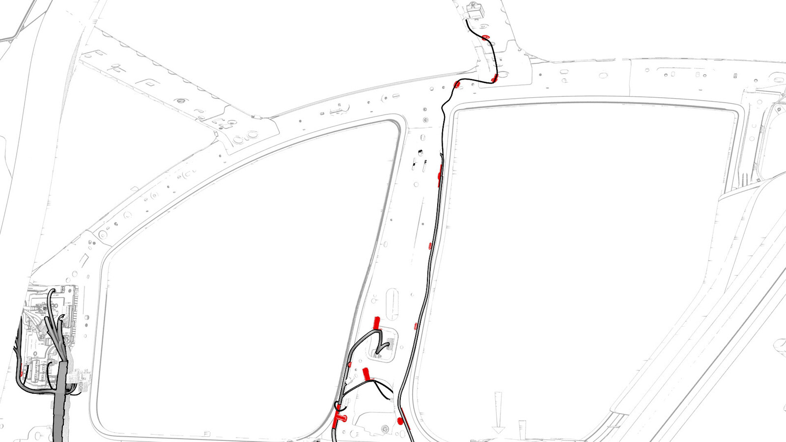 - Release the clips that attach the electrical harness to the body in the C-pillar area.