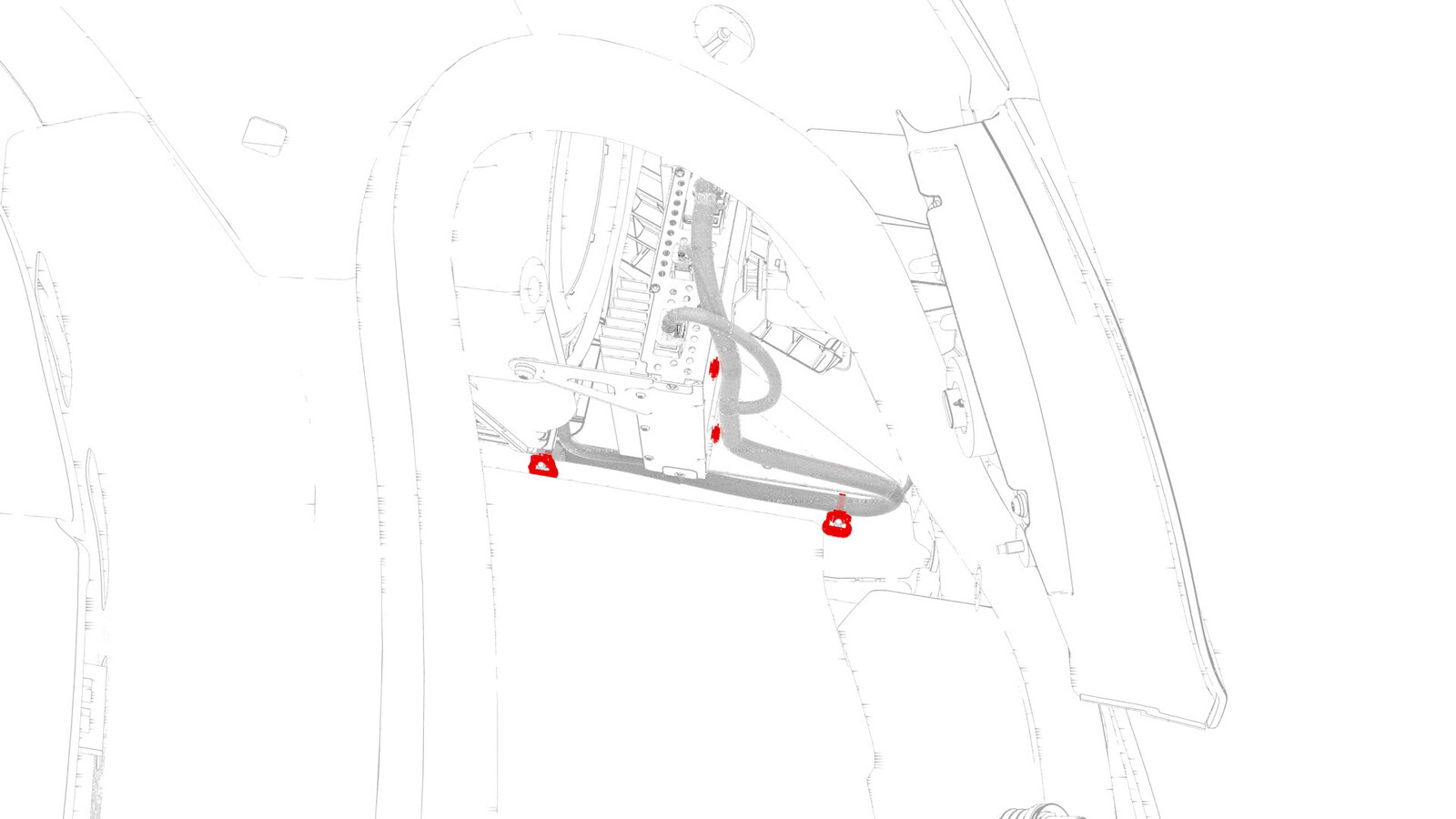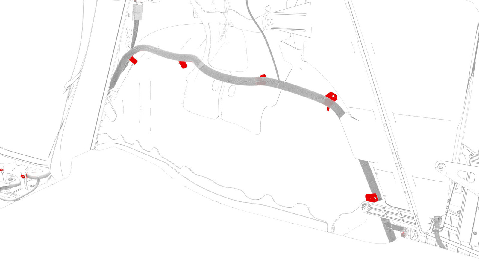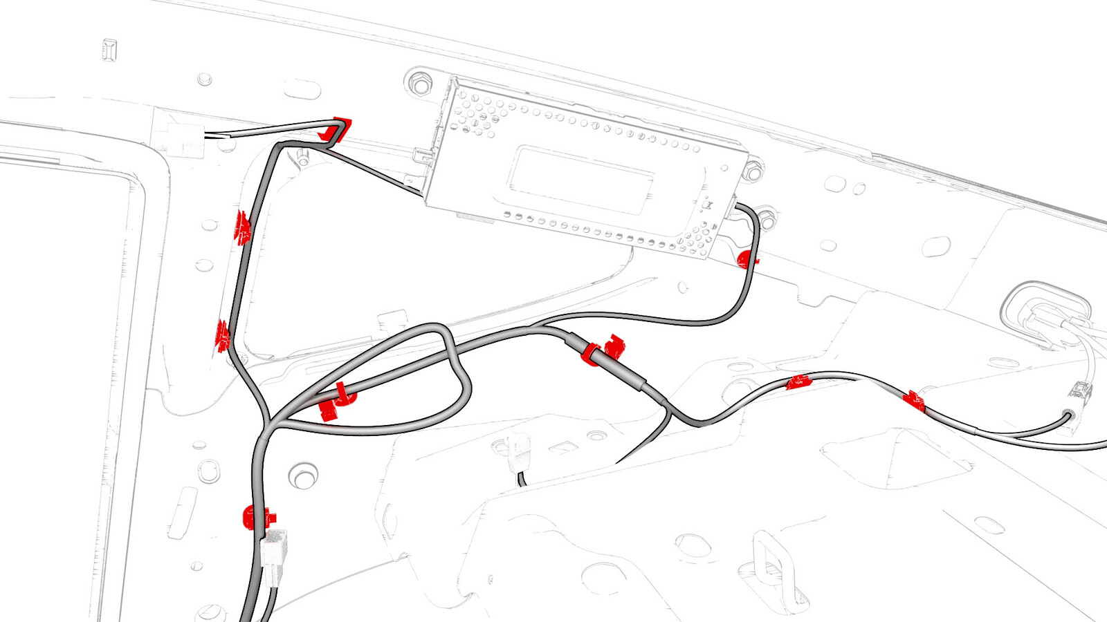 - Fasten the clips that attach the electrical harness to the body in the A-pillar and B-pillar areas.