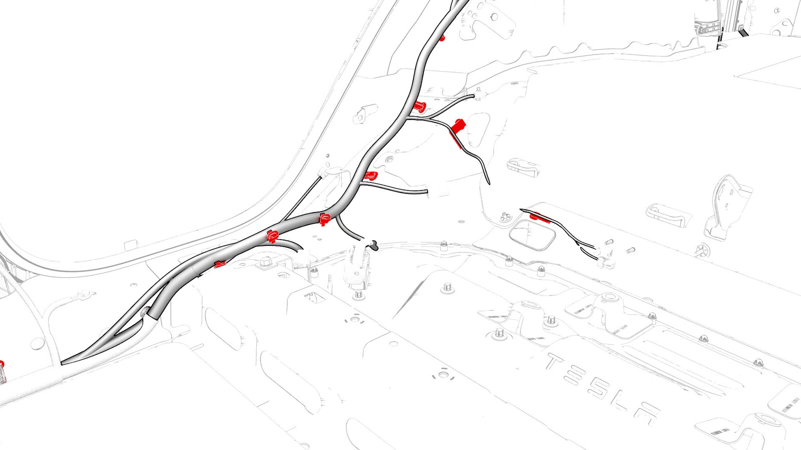 - Release the clips that attach the electrical harness to the body in the rear subframe area.