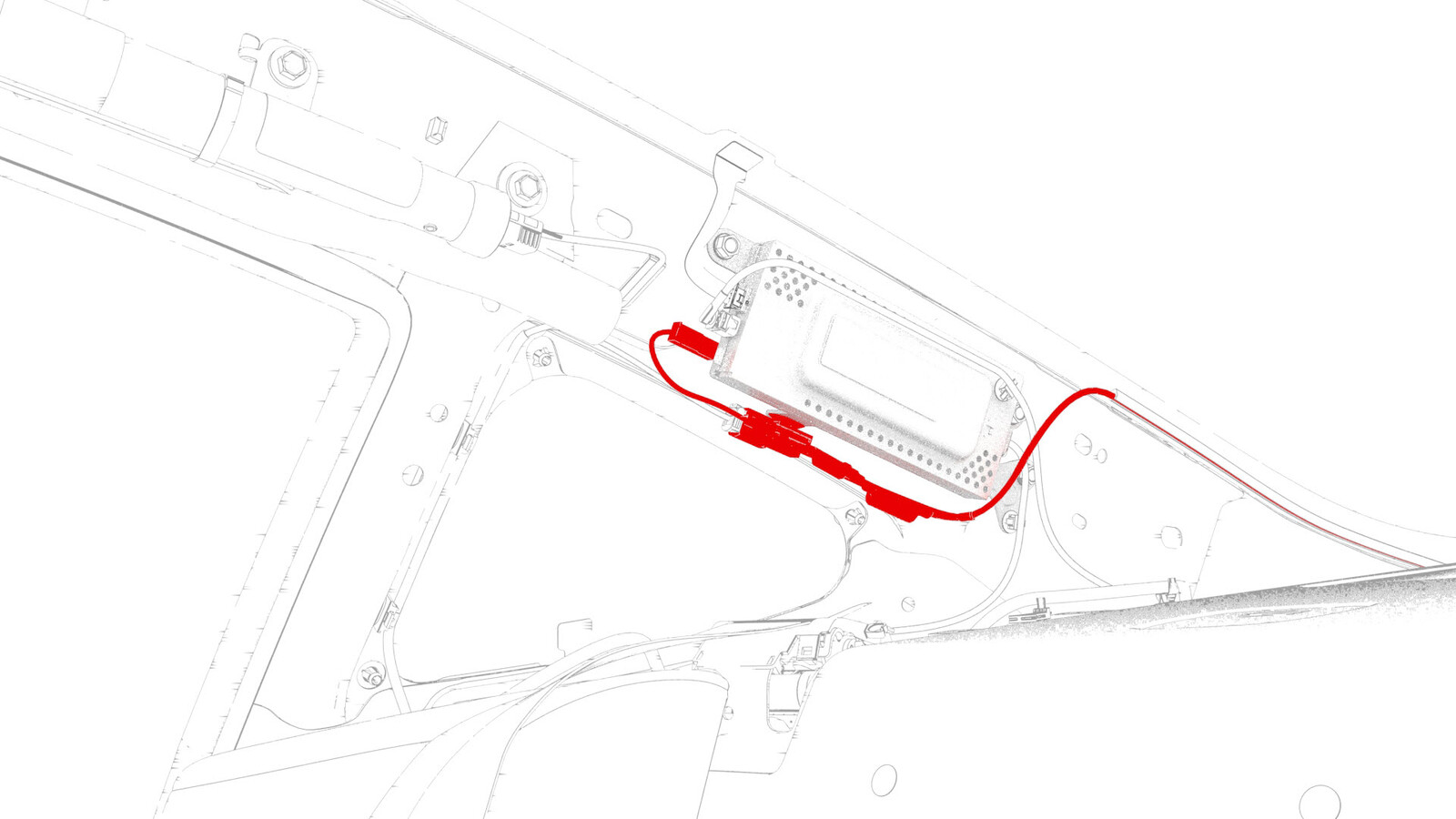 - Connect the electrical harness to the B-pillar antenna connector.