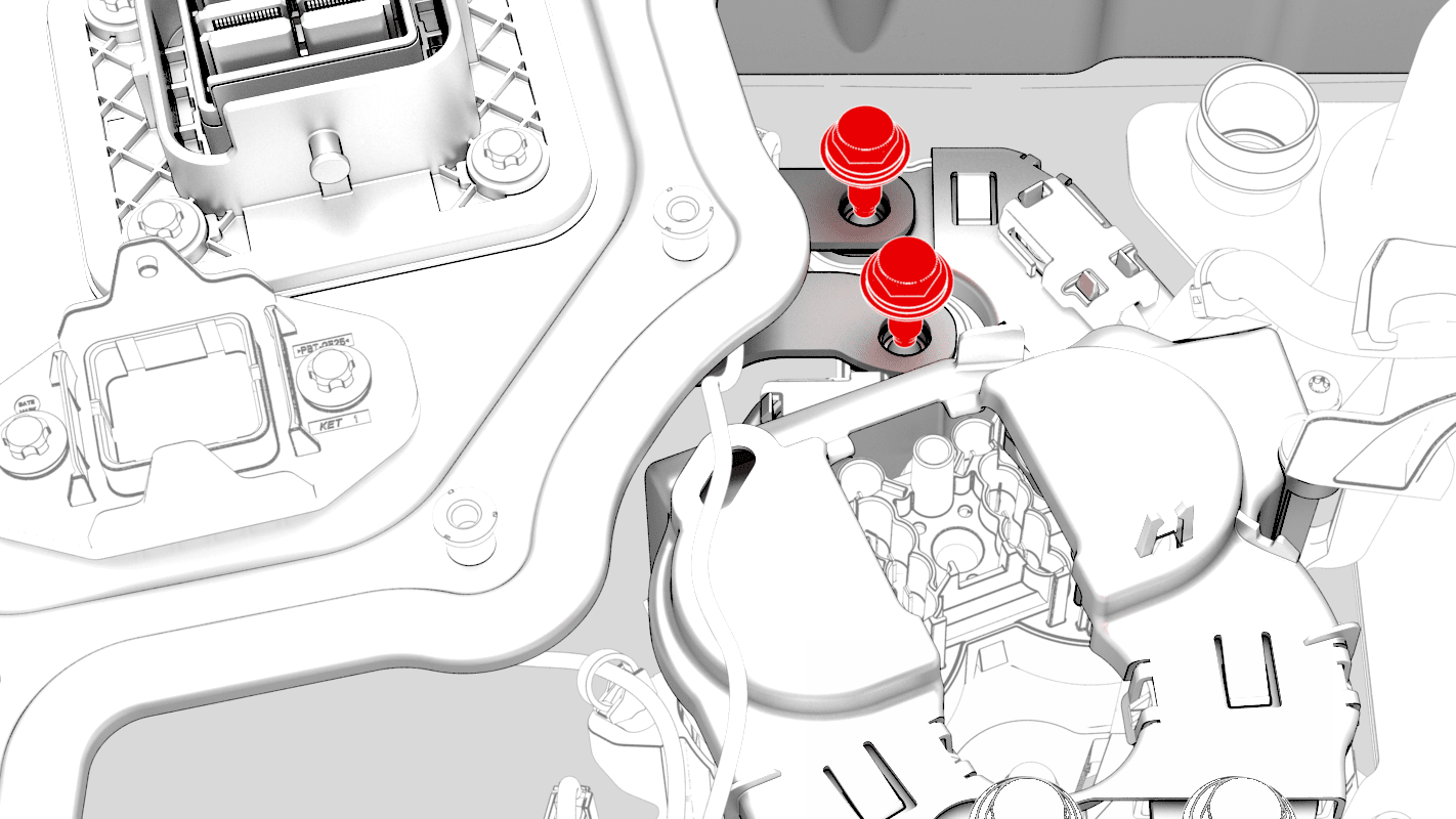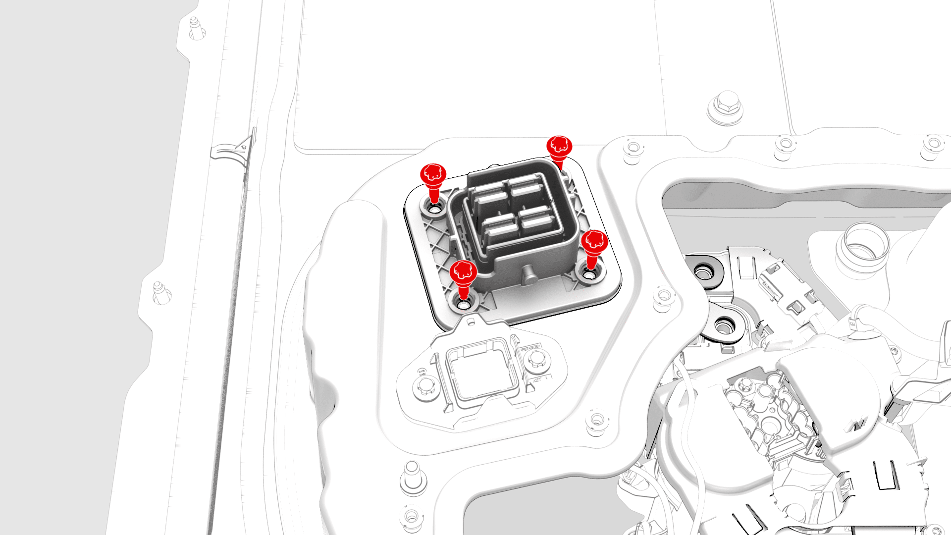 - Remove the bolts that attach the DC input assembly to the ancillary bay, and then remove the DC input assembly from the vehicle.