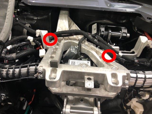 - Install the blower motor harness clips (x2) to the cross car beam.