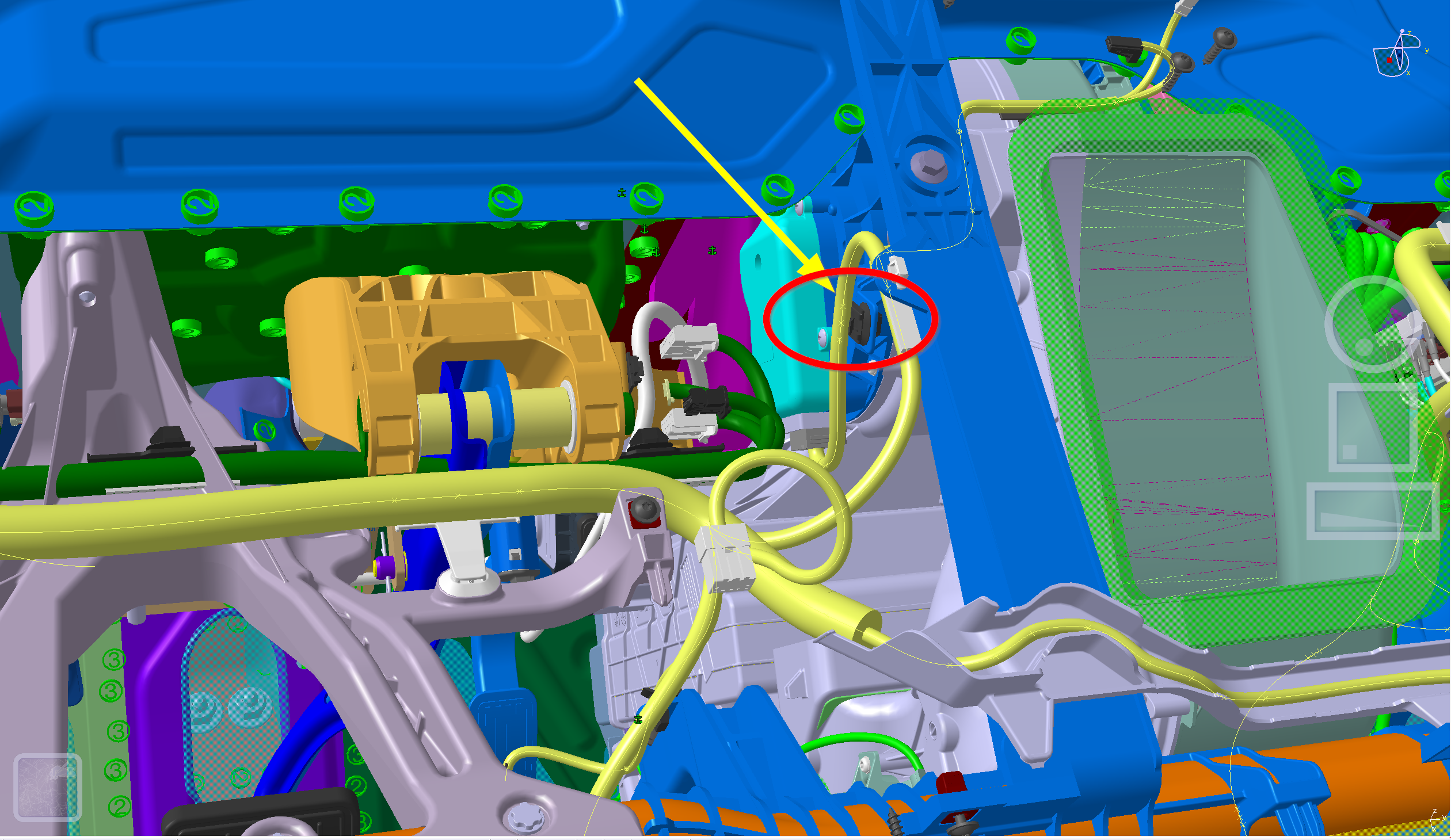 - Install the harness clip to the instrument panel near the LH controller.
