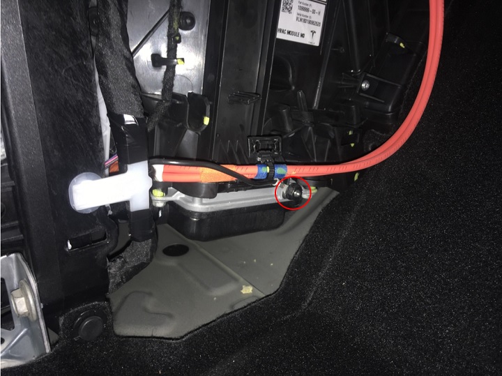 attaches the instrument panel harness ground strap to the PTC heater.