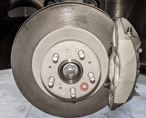 | Bolt that attaches the LH front brake rotor to the knuckle |