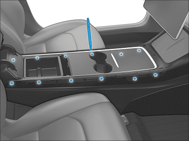On both sides of the center console, use a trim tool to release the rear clips that attach the center console décor trim to the center console.