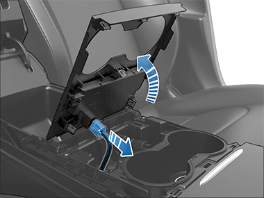- Move up the center console décor trim and disconnect the electrical connector of the wireless phone charger.