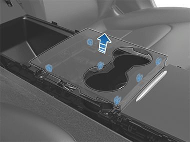 Carefully lift up the cup holder décor trim to release the clips that attach it to the center console.